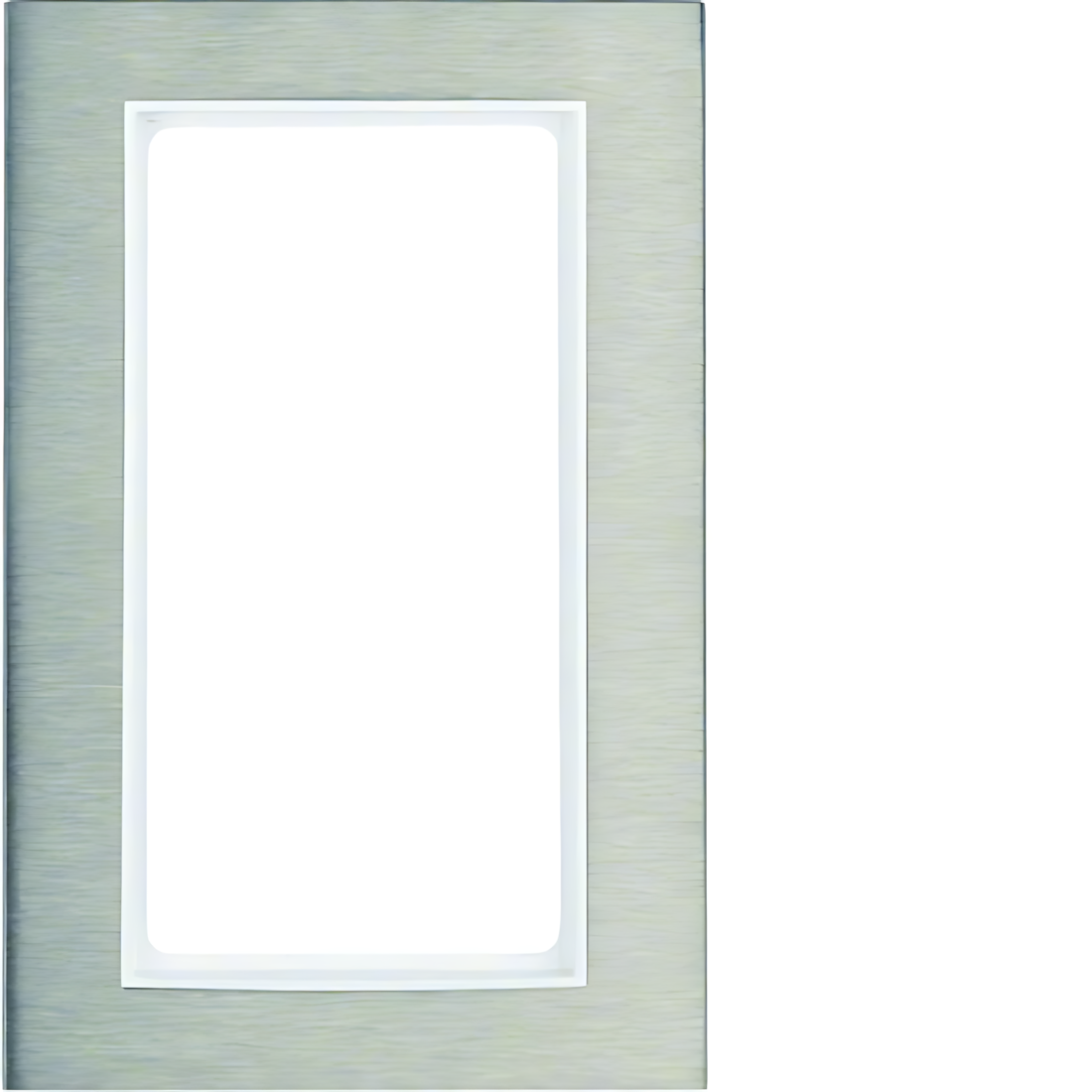 Berker Rahmen 13093609 Rahmen mit großem Ausschnitt B.7 Edelstahl/polarweiß. Metallrahmen mit großem Ausschnitt für lange Tastsensoren. Für senkrechte Montage. Unterputz-Installation, Flächen-/Designprogramm. Material Edelstahl Rostfrei, Kunststoff, Thermoplast, bruchsicher, halogenfrei. Hersteller Berker Schalterprogramm EAN Nr. 4011334385066 Warengruppe Berker Serie B