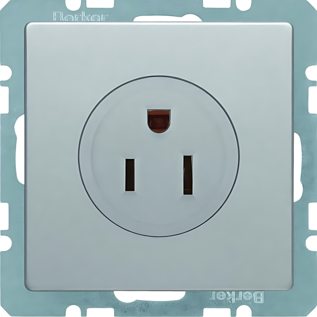 Berker Steckdose 41666084 Steckdose mit Schutzkontakt 'USA/CANADA' NEMA 5-15 R Q.1/Q.3 alu samt, lackiert. Steckdose mit Schutzkontakt-USA/CANADA-NEMA 5-15 R 2-polig Erde, ohne Spreizkrallen, mit Schraubklemmen, nach Norm NEMA 5-15 R. Unterputz-Installation, Flächenprogramm. Material Kunststoff, Thermoplast, bruchsicher, halogenfrei. Hersteller Berker Schalterprogramm EAN Nr. 4011334446545 Warengruppe Berker Serie Q