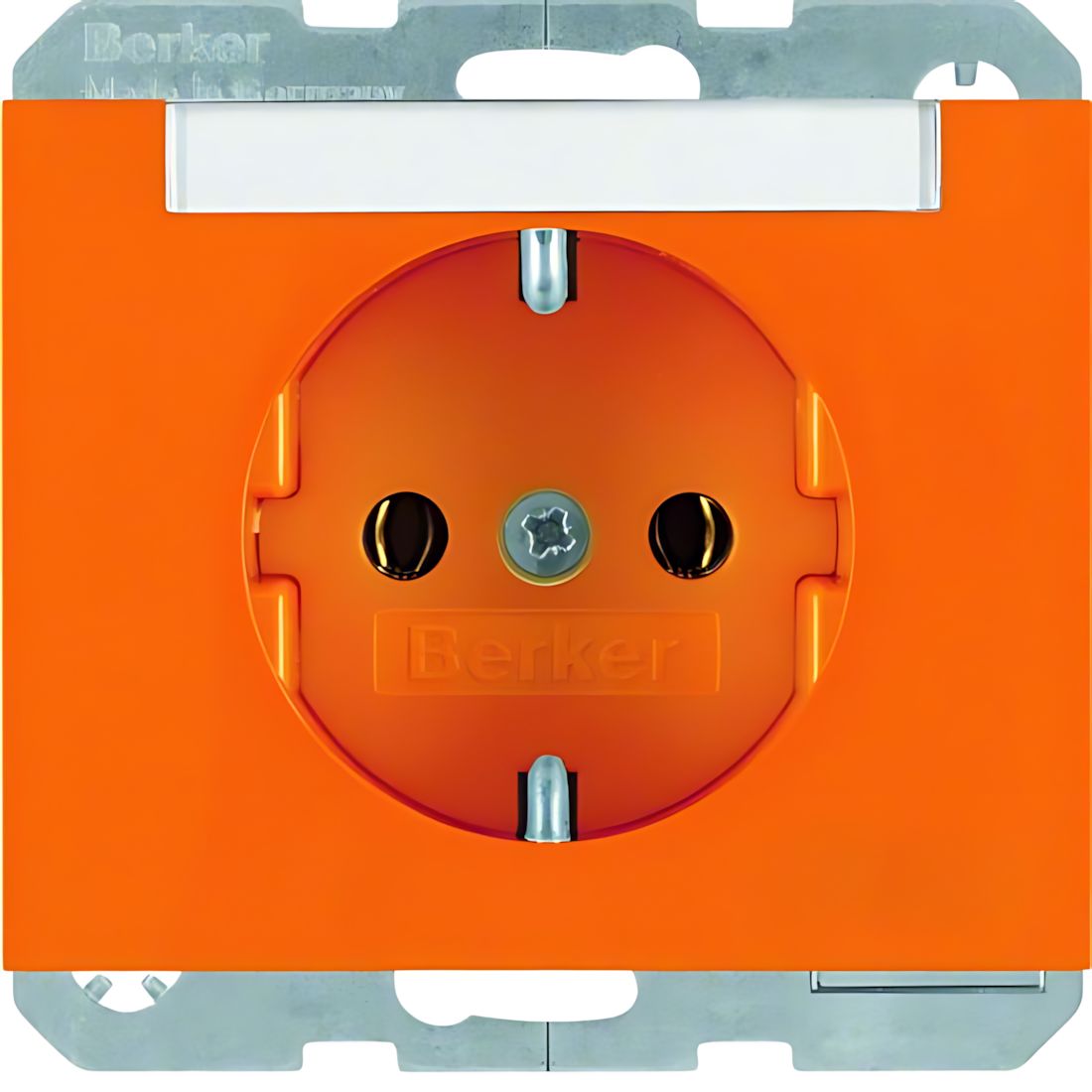Berker Steckdose 47397014 Steckdose SCHUKO mit Beschriftungsfeld K.1/K.5 orange, glänzend. Steckdose SCHUKO mit Beschriftungsfeld, mit Steckklemmen nach VDE 0620 als Verbindungsklemmen ausgeführt und genehmigt, mit einteiligem Erdungsbügel. Unterputz-Installation, Flächenprogramm. Material Kunststoff, Thermoplast, bruchsicher, hochglänzende Oberfläche, halogenfrei. Hersteller Berker Schalterprogramm EAN Nr. 4011334263708 Warengruppe Berker Serie K