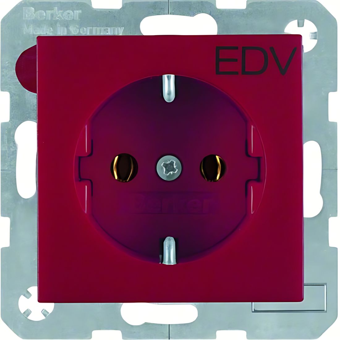 Berker Steckdose 47431922 Steckdose SCHUKO mit Aufdruck S.1/B.3/B.7 rot, matt. Steckdose SCHUKO mit Aufdruck-EDV -, mit Steckklemmen nach VDE 0620 als Verbindungsklemmen ausgeführt und genehmigt, mit einteiligem Erdungsbügel. Unterputz-Installation, Standard-/Flächen-/Designprogramm. Material Kunststoff, Thermoplast, bruchsicher, halogenfrei. Hersteller Berker Schalterprogramm EAN Nr. 4011334224341 Warengruppe Berker Serie B
