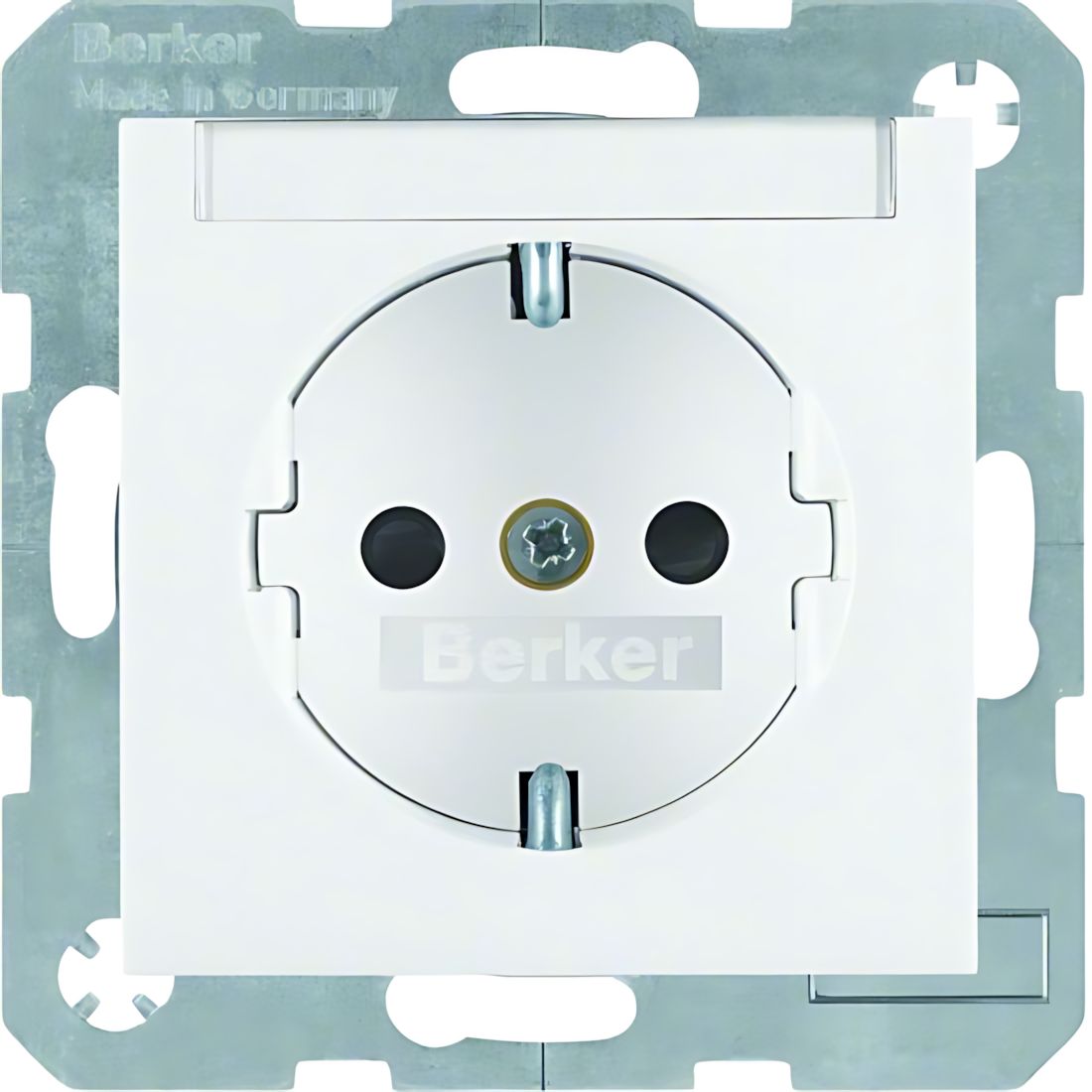 Berker Steckdose 47491909 Steckdose SCHUKO mit Beschriftungsfeld u. erh.BS S.1/B.3/B.7 polarweiß, matt. Steckdose SCHUKO mit Beschriftungsfeld, mit erhöhtem Berührungsschutz, mit Steckklemmen nach VDE 0620 als Verbindungsklemmen ausgeführt und genehmigt, mit einteiligem Erdungsbügel. Unterputz-Installation, Standard-/Flächen-/Designprogramm. Material Kunststoff, Thermoplast, bruchsicher, halogenfrei. Hersteller Berker Schalterprogramm EAN Nr. 4011334224433 Warengruppe Berker Serie S