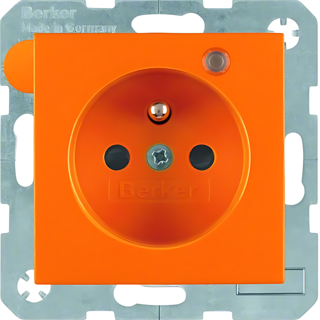 Berker Steckdose 6765091914 Steckdose mit Schutzkontaktstift und Kontroll-LED S.1/B.3/B.7 orange, matt. Steckdose mit Schutzkontaktstift und Kontroll-LED 2-polig Erde, mit Schraub-Liftklemmen, Kontroll-LED leuchtet bei anliegender Netzspannung, zuverlässige Spannungsanzeige durch Unempfindlichkeit gegen Scheinspannungen, mit erhöhtem Berührungsschutz. Unterputz-Installation, Standard-/Flächen-/Designprogramm. Material Kunststoff, Thermoplast, bruchsicher, halogenfrei. Hersteller Berker Schalterprogramm EAN Nr. 4011334362661 Warengruppe Berker Serie B