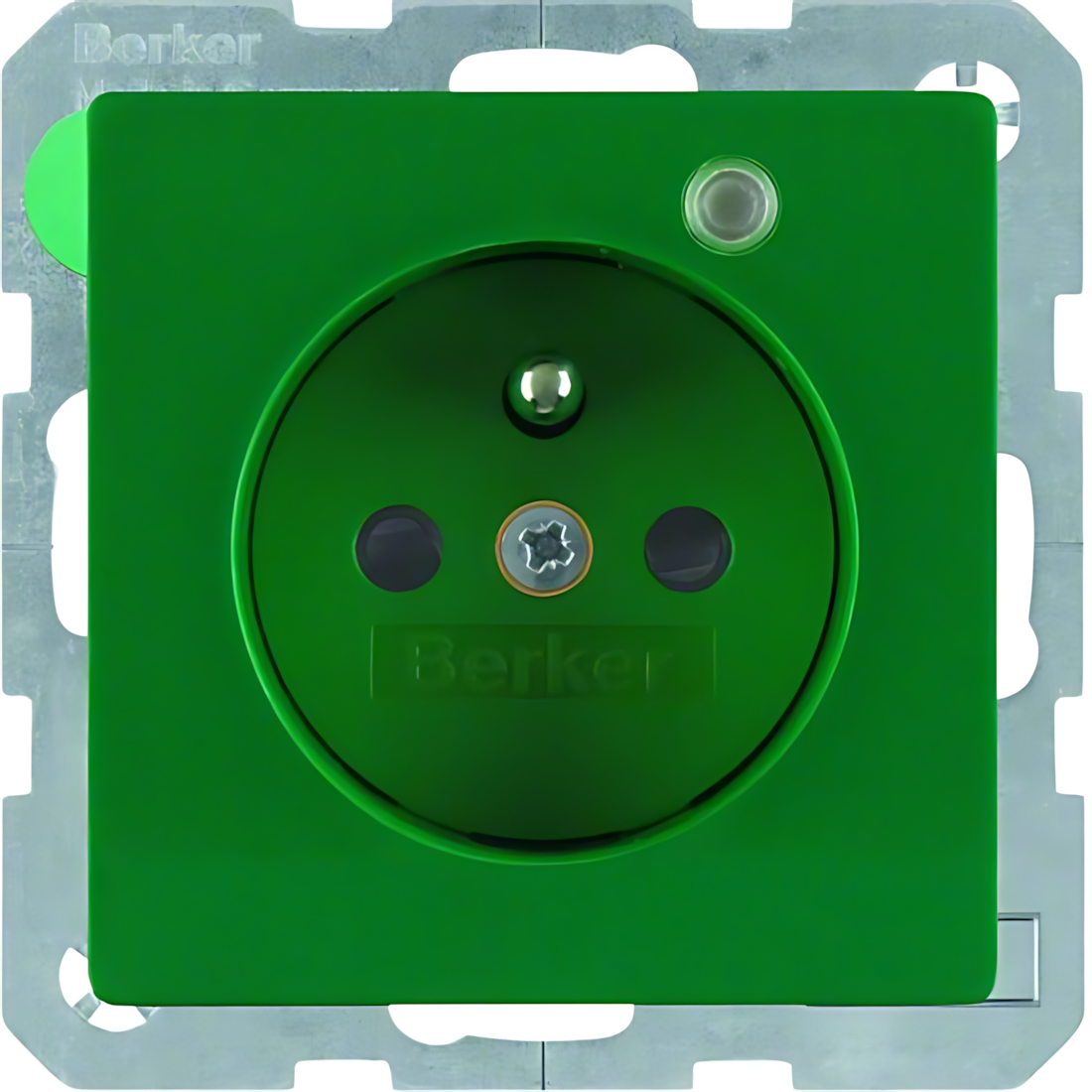 Berker Steckdose 6765096013 Steckdose mit Schutzkontaktstift, Kontroll-LED u. erh.BS Q.1/Q.3 grün, samt. Steckdose mit Schutzkontaktstift und Kontroll-LED 2-polig Erde, mit Schraub-Liftklemmen, Kontroll-LED leuchtet bei anliegender Netzspannung, zuverlässige Spannungsanzeige durch Unempfindlichkeit gegen Scheinspannungen, mit erhöhtem Berührungsschutz. Unterputz-Installation, Flächenprogramm. Material Kunststoff, Thermoplast, bruchsicher, halogenfrei. Hersteller Berker Schalterprogramm EAN Nr. 4011334362760 Warengruppe Berker Serie Q
