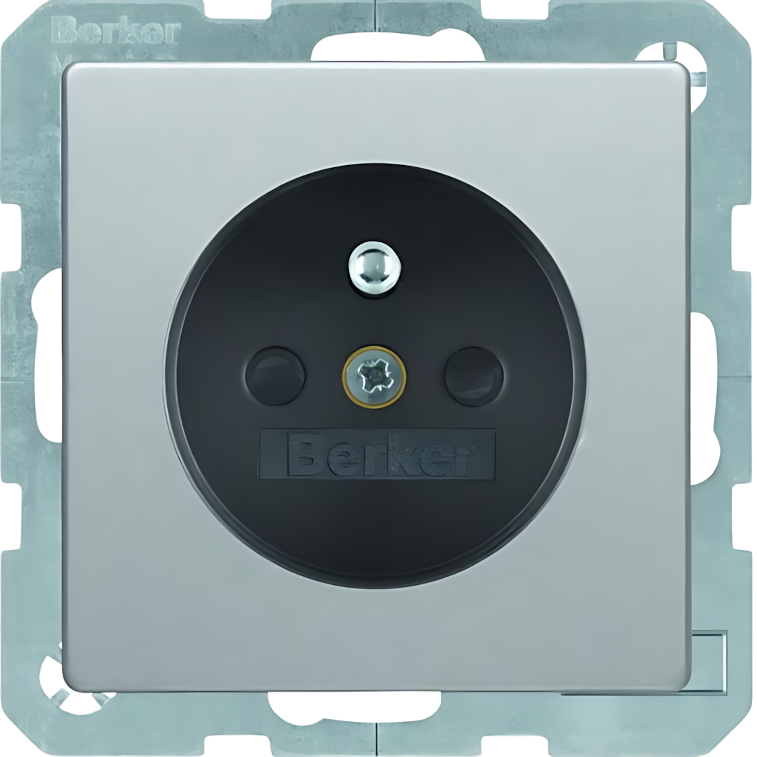 Berker Steckdose 6765766084 Steckdose mit Schutzkontaktstift u. erh.BS Q.1/Q.3 alu samt, lackiert. Steckdose erhöhter Berührungsschutz mit Schutzkontaktstift, 2-polig Erde, Schraub-Liftklemmen. Hersteller Berker Schalterprogramm EAN Nr. 4011334443858 Warengruppe Berker Serie Q