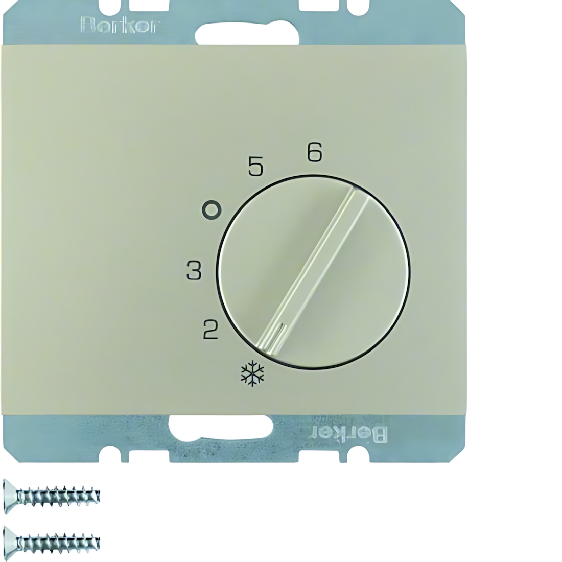 Berker Temperaturregler 20267104 Temperaturregler mit Wechsler und Zentralstück K.5 edelstahl, lackiert. Raumtemperaturregler mit Wechsler und Zentralstück, mit Aufdruck, Regulierknopf mit Temperaturbereichsbegrenzung. Für Heiz- oder Kühlbetrieb, z.B. für Stellantriebe stromlos geschlossen, mit thermischer Rückführung, ohne Spreizkrallen, mit Steckklemmen, Neutralleiter erforderlich, wird die eingestellte Temperatur erreicht, wechselt der Kontakt. Unterputz-Installation, Flächen-/Designprogramm. Material Kunststoff, Thermoplast, bruchsicher, halogenfrei. Hersteller Berker Schalterprogramm EAN Nr. 4011334309680 Warengruppe Berker Serie K