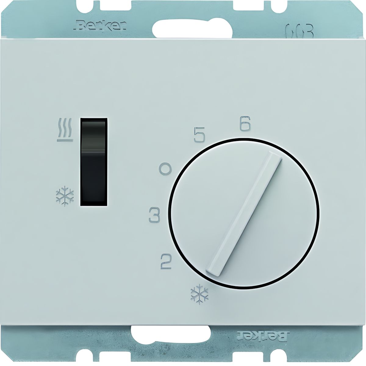Berker Temperaturregler 20297103 RTR, Wechsler, Heiz/Kühl, K.5, alu mt. Temperaturregler, Wechsler mit Schalter Heizen/Kühlen, K.5, alu matt, lackiert. Temperaturregler mit Zentralstück, Wippschalter, Aufdruck, Regulierknopf mit Temperaturbereichsbegrenzung, Regelbereich der Temperatur einstellbar, Temperaturmessung über internen Temperaturfühler. Für Heiz- oder Kühlbetrieb, z.B. für Stellantriebe stromlos geschlossen, mit thermischer Rückführung, ohne Spreizkrallen, mit Steckklemmen. Wird die eingestellte Temperatur erreicht, wechselt der Kontakt. Hinweise: Neutralleiter erforderlich! Geeignet für Anlagen mit Wärmepumpe. Hersteller Berker Schalterprogramm EAN Nr. 4011334509004 Warengruppe Berker Serie K