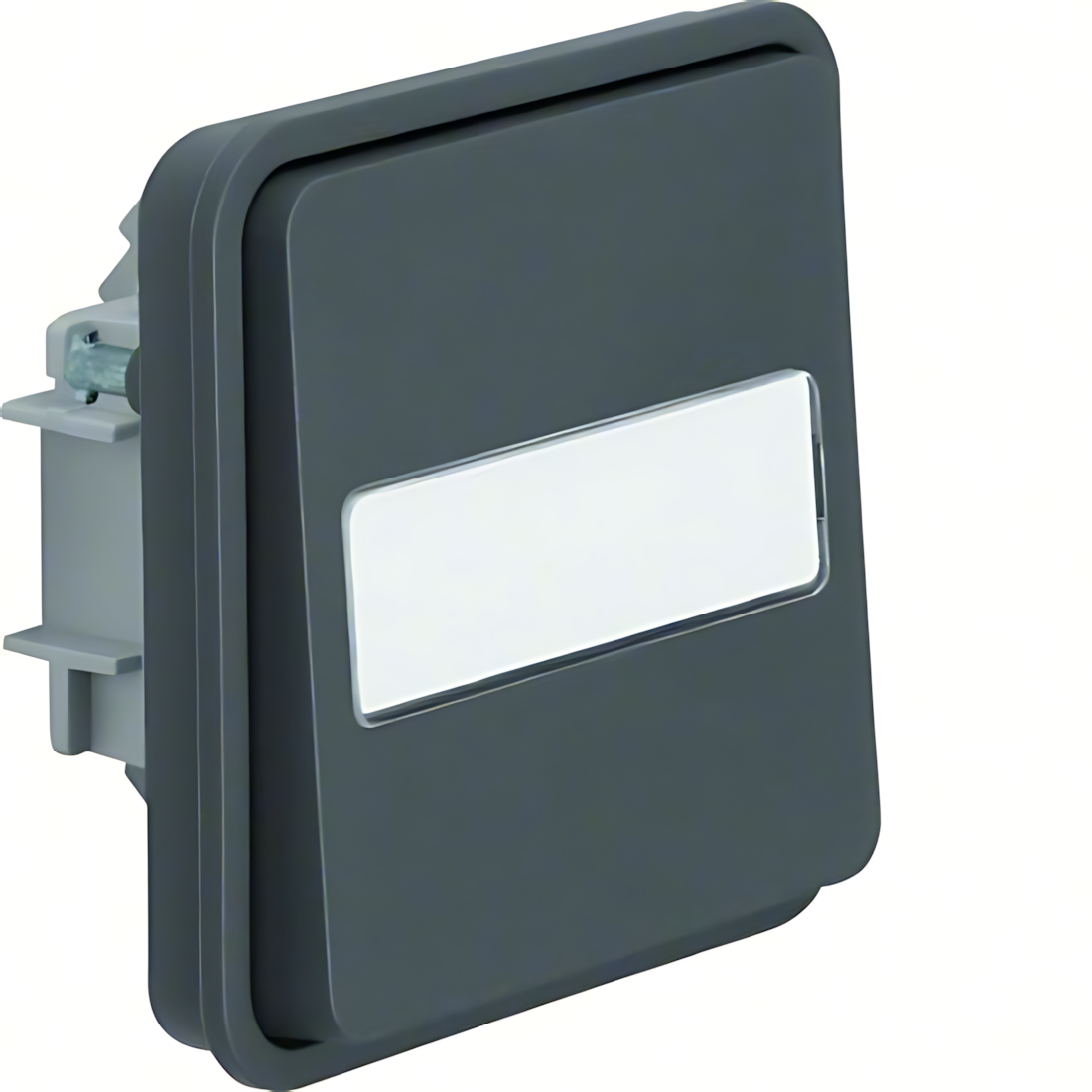 Berker Wechselschalter Einsatz 30863535 Wechselschalter-Einsatz mit Wippe und Beschriftungsfeld beleuchtet W.1 grau. Wechselschalter-Einsatz mit Wippe AP/UP mit Beschriftungsfeld-beleuchtet, Beschriftungsfeld ca. 50x16 mm, Beschriftungsfeldhöhe für P-touch Band 12 mm ausgelegt, mit blauem LED-Aggregat 230 V für Schalter/Taster. Für Beleuchtung, mit N-Klemme, mit Steckklemmen, Einsätze erreichen nur bei Montage mit einem Gehäuse AP oder Rahmen für UP-Montage der Produktlinie W.1 den Schutz Grad IP55. Aufputz-Installation. Material Kunststoff, Thermoplast, schlagfest. Hersteller Berker Schalterprogramm EAN Nr. 4011334390275 Warengruppe Berker Serie W