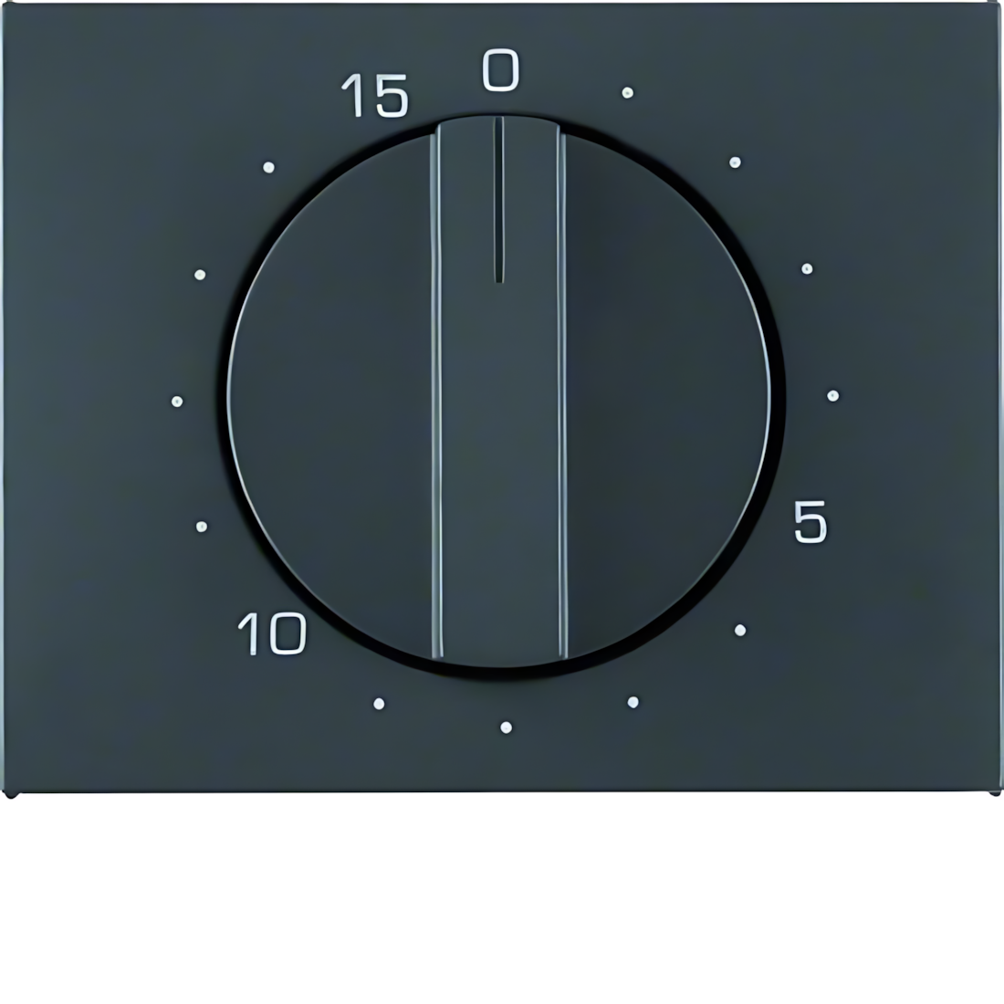 Berker Zentralstück 16347106 Zentralstück mit Regulierknopf für mechanische Zeitschaltuhr K.1 anthrazit, matt. Zentralstück mit Regulierknopf für mechanische Zeitschaltuhr, mit Aufdruck, Laufzeit 15 Minuten. Unterputz-Installation, Flächenprogramm. Material Kunststoff, Thermoplast, bruchsicher, halogenfrei. Hersteller Berker Schalterprogramm EAN Nr. 4011334297208 Warengruppe Berker Serie K
