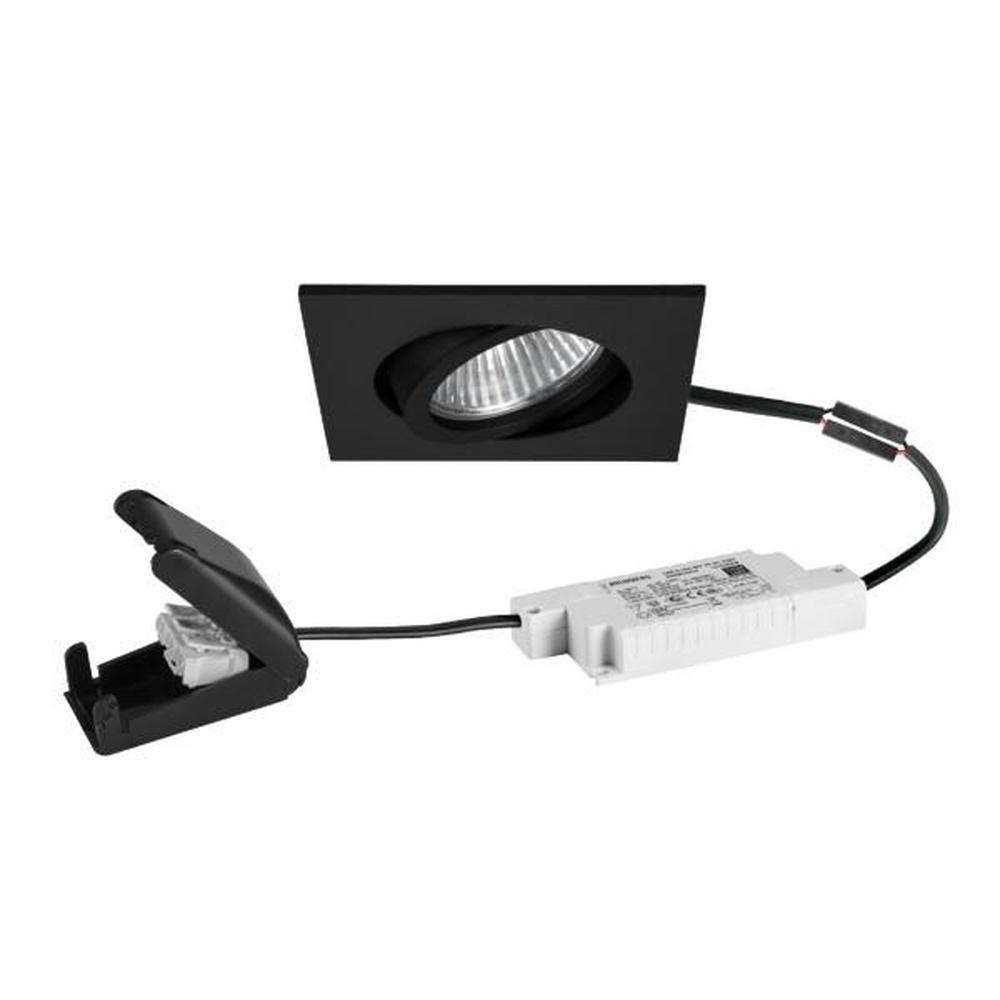 Brumberg LED Einbaustrahler 39485083 LED-Einbaustrahler 230 V AC, 50 Hz, 6 W, 38 Grad, dim2warm, 3.000 K-1.800 K, CRI> LED-Einbaustrahlerset, dim2warm, Phasenabschnitt dimmbar, mit Anschlussbox, schwarz matt, quadratisch. Ausgeführt in kompakter Bauform für werkzeuglose Schnellmontage zum Deckeneinbau. Wird die Leuchte gedimmt, verringert sich die Farbtemperatur. Set inkl. Konverter für 230 V-Netzspannung, Phasenabschnitt dimmbar, Maße Konverter: L 110xB 50xH 19 mm Montageart: Einbaumontage, Montageort: Deckenmontage, Material: Aluminium/Glas/Kunststoff, Schutzart raumseitig: nach DIN EN 60529: IP20, Schutzklasse: (EN 61140) II, Spannung: 230V AC 50Hz, Leistung: 6 W, Anzahl der Leuchtmittel/Fassungen: 1 Stück, Lichtstrom: 430 lm, Farbtemperatur: von 3.000 K bis 1.800 K, Abstrahlwinkel: 38 Grad, Verstellbarkeit: schwenkbar, Mit Betriebsgerät: Ja, Dimmbar: Ja, Art der Dimmung: Phasenabschnitt. Hersteller Brumberg Nr. 39485083 EAN Nr. 4251433936916 Warengruppe Brumberg Einbaustrahler