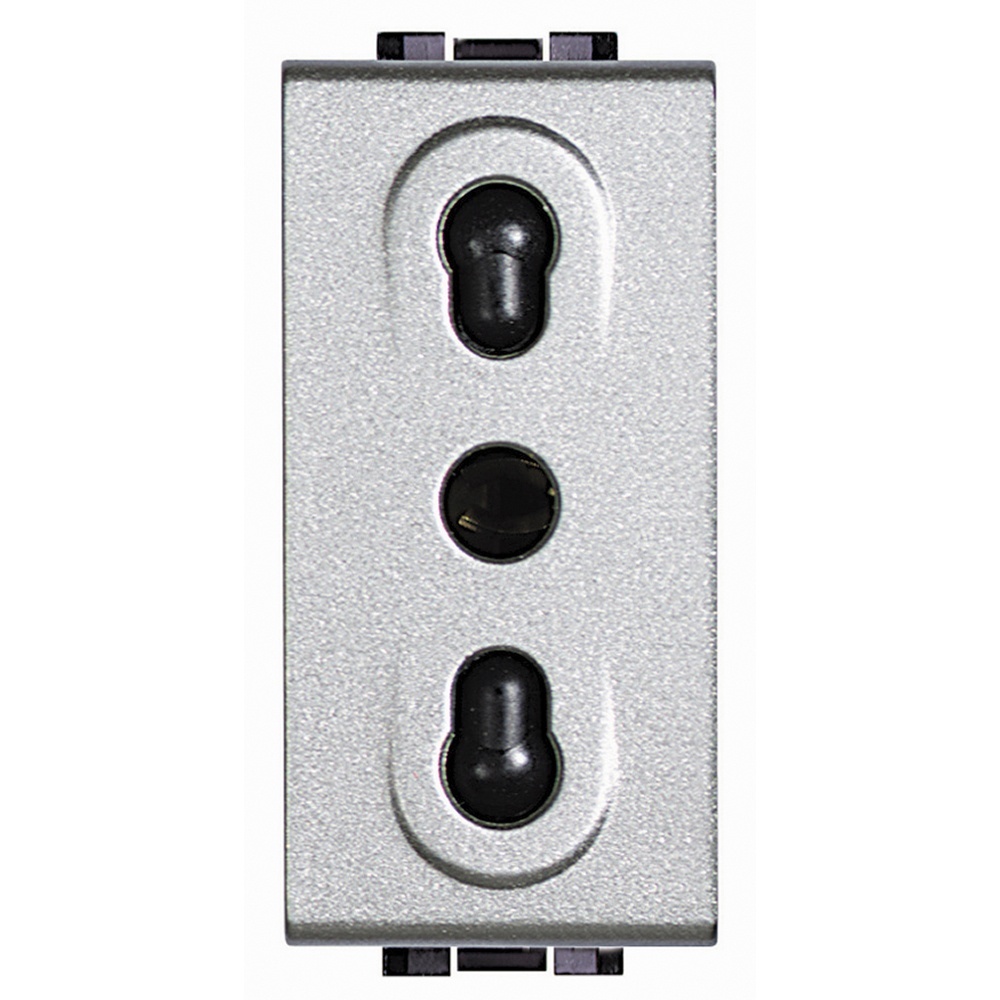 Bticino Steckdose NT4180-EU Steckdose Italienischer Standard (Stiftabstand 19 und 26 mm) für Schalterprogramm LIVINGLIGHT, Farbe: Tech Steckdose italienischer Standard 10/16 A (Stiftabstand 19 und 26 mm) für das Schalterprogramm LIVINGLIGHT, mit erhöhtem Berührungsschutz, für Euro-Flachstecker ohne Schutzkontakt geeignet, 1-modulig, Farbe: Tech Hersteller Bticino EAN Nr. 8005543624784 Warengruppe Bticino Living Light Einsätze