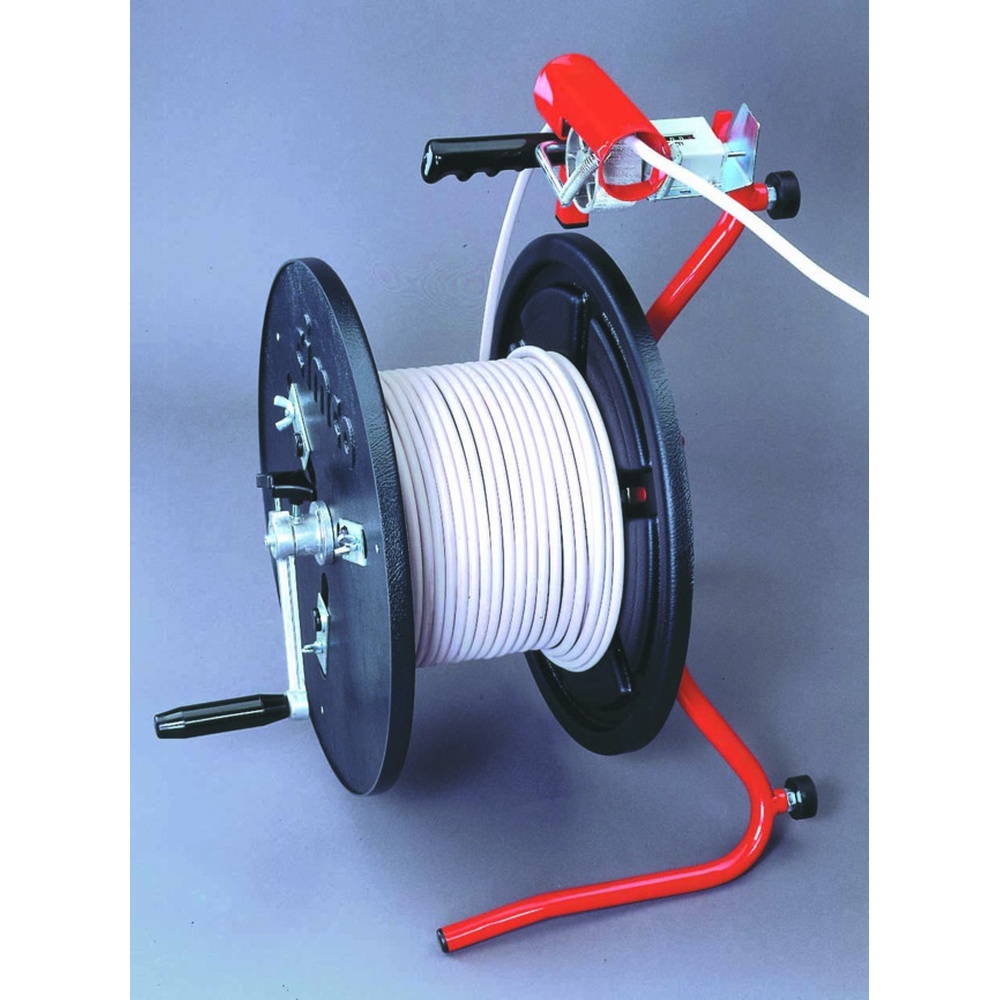 Cimco Kabelring-Abspuler 142740 Kabelring- Abspuler LxBxH 570x460x400mm Kabelring- Abspuler, für Wickelgüter wie Kabel aller Art und flexible Leerrohre, aus pulverbeschichtetem Stahlrohr, für horizontales und vertikales Auf- und Abspulen von Kabelringen ab 110mm Innen- und max. 300mm Außendurchmesser, blitzschnell auf unterschiedliche Ringdurchmesser einstellbar durch selbst arretierende Führungen, mit 3 rutschfesten Gummifüßen, Tragegriff und Schnellwickel-Handkurbel, Tragkraft bis 70kg EAN Nr. 4021103427408 Warengruppe Cimco Kabeleinziehhilfen