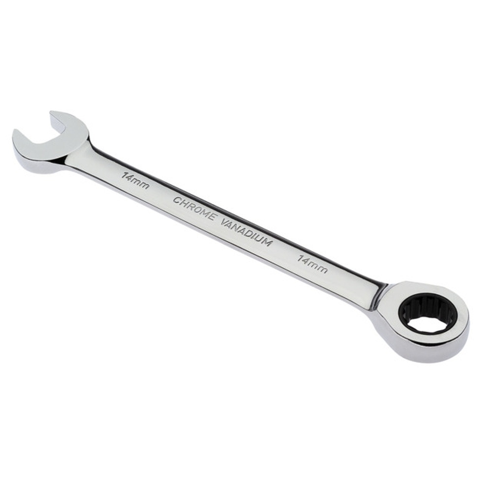 Cimco Maulringschlüssel 112514 Knarren-Ring- und Gabelschlüssel 14mm Knarren-Ring- und Gabelschlüssel für ratschendes Lösen oder Schnellanzug von Schrauben und Muttern in einem Zug ohne setzen mit der Ringknarre. Auf einer Seite Gabel- bzw. Maulschlüssel mit 15 Grad Kröpfung, auf der anderen Seite ein Ringschlüssel gleicher Schlüsselweite mit eingebautem Knarrenmechanismus mit besonderen Vorzügen: Knarre mit Feinverzahnung: 72 Zähne = nur 5 Grad minimaler Schwenkwinkel. Links- und Rechtslauf erfolgen durch einfaches Umdrehen des Schlüssels und nicht mittels störendem Umschalthebel, der sich oft unbeabsichtigt verstellt.Die Schlüssel bauen trotz Knarre sehr schmal. Damit sind die Werkzeuge besonders gut bei beengten Platzverhältnissen einsetzba 12-kant-Ring mit Flankenantrieb, d. h. der Antrieb erfolgt nicht mehr über die Schraubkopfecken, sondern an den Flanken, wodurch eine wesentlich höhere Kraftübertragung erreicht wird und die Kanten von Schraubköpfen und Muttern geschont werden Aus Chrom-Vanadium-Stahl gesenkgeschmiedet, spezialgehärtet, hochglänzend poliert, vernickelt und hartverchromt. Sehr hohe Drehmomentübertragung, die DIN-Forderungen werden übertroffen.14mm EAN Nr. 4021103125144 Warengruppe Cimco Werkzeugschlüssel