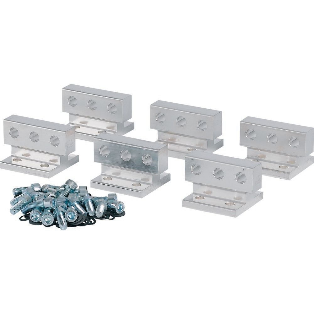 Eaton Anschluss 183974 Typ IZMX-THV403-1 Anschluss, 3p, horizontal/vertikal, 3200A Zusatzausrüstung, Anschlüsse horizontal, vertikal, An den Flanschanschlüssen des Schalters kann Kupferschiene direkt angeschlossen werden., Dieser Anschlusssatz enthält T-förmige Anschlussstücke für alle Hauptanschlüsse und können wahlweise horizontal oder vertikal an Schalter bis 3200A montiert werden., Bemessungsstrom In 800-3200 A, Pole 3, verwendbar für IZMX40…3…08…, IZMX40…3…10…, IZMX40…3…12…, IZMX40…3…16…, IZMX40…3…20…, IZMX40…3…25…, IZMX40…3…32…, INX40…3…08…, INX40…3…10…, INX40…3…12…, INX40…3…16…, INX40…3…20…, INX40…3…25…, INX40…3…32… Hersteller Eaton Nr. 183974 Typ IZMX-THV403-1 EAN Nr. 4015081782932 Warengruppe Eaton Leistungsschalter