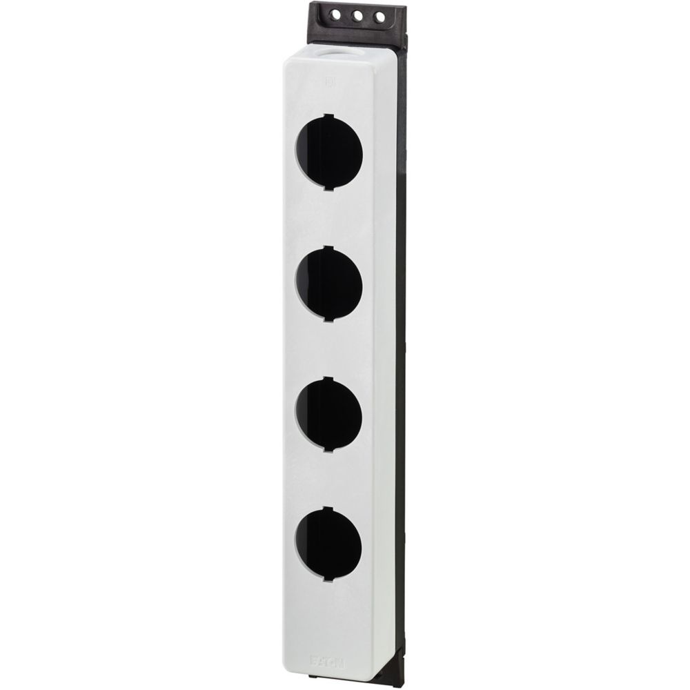 Eaton Aufbaugehäuse 197238 Typ M30-FI4 Aufbaugehäuse, flach, 4 Einbaustellen, M30 Aufbaugehäuse, Gehäuse: Kunststoff, mit Edelstahlschrauben, Einbaustellen: 4, Leitungseinführung: rückseitig: 1xM20, seitlich: 2xM20 (je Seite 1 x), Farbe RAL-Wert: RAL 7035, Farbe: Gehäuseunterteil anthrazit, Anbindung an SmartWire-DT: nein, verwendbar für: 4x30,5, verwendbar für: (Leucht)-Drucktasten, (Leucht)-Wahltasten, Schlüsseltasten, Leuchtmelder, NOT-HALT-/NOT-AUS-Tasten mit gelbem Reduzierringsatz M22Y-R30, Flat Rear Kontakte M22-FK., Flat Rear LED-Elemente M22-FLED-… Hersteller Eaton Typ M30FI4 EAN Nr. 4015080893097 Warengruppe Eaton Befehls/Meldegeräte