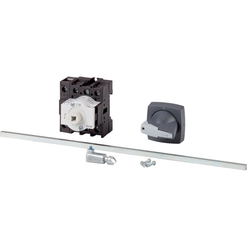 Eaton Hauptschalter 172774 Typ P1-25/M4/K1-PG/N Hauptschalter, 3-polig + N, 25 A, NOT-HALT-Funktion, abschließbar in 0-Stellung, Zwischenbau, mit 400 mm Metallachse Hauptschalter/Lasttrennschalter Ein-Aus nach IEC/EN 60947-3, 690V/25A, Schutzart Front IP65, Griff grau, abschliessbar mit 3 Vorhängeschlössern, Die Lasttrennschalter P1 sind sehr kompakt und robust gebaut. Der Handantrieb wirkt in direkter Verbindung auf die Kontakte. Die Kontakte werden beim Ausschalten zwangsläufig geöffnet. Mit Metallachse. Bauformen allgemein Isolierstoff-Aufbaugehäuse, Einbau, Zentraleinbau, Zwischenbau, IVS-Verteilereinbau, Alte Herstellerbezeichnung Klöckner Möller Herstellertyp 172774 EAN Nr. 4015081693603 Warengruppe Eaton Hauptschalter