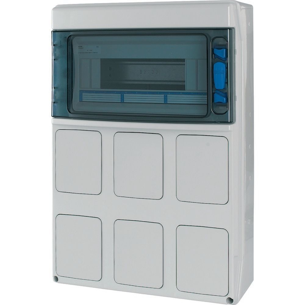 Eaton IKA Verteiler 187357 Typ IKA-C-1/12-ST-LID IKA Verteiler IP65 1R 12TE + Klemmen + Montageplatte für Muffen Einbausteckdosen IKA Feuchtraumkleinverteiler RAL7035, mit Neutral-und Schutzleiterklemme, CNC geschäumte Dichtung für Schutzart IP65 nach IEC/EN 62208, 18 Teilungseinheiten, 1-reihig, UV stabil nach DIN EN ISO 4892-2, für den Bau von Installationsverteilern nach IEC/EN 61439-3 VDE 0660-600-3 zugelassen, integrierte Modulkompensation für unterschiedliche Gerätebreiten, metrische Leitungsvorprägungen mit Zentrierungspunkt, Gehäuse komplett aus Polycarbonat (UV-beständig), zum Einbau von Schalt-und Schutzgeräten nach Maßnorm DIN 43 880 mit 70 mm oder 85 mm Einbautiefe, AC 1000 V, DC 1500 V, RoHs-konform, Bestehend aus Kunststoffunterteil mit Hutprofilschiene aus verzinktem Stahlblech, Hutschiene tiefenverstellbar in 2 Positionen, direkt Montage Wandbefestigungslöcher, fingersichere Neutral-und Schutzleiterklemme IP2X, Vorprägung für metrische Leitungseinführungen oben und unten, seitliche Vorprägungen für Verbindungselemente zur Verbindung von zwei oder mehreren Gehäusen nebeneinander, Oberteil mit 46 mm Geräteöffnung, transparente Tür frontbündig, rechts oder links anschlagbar, Türanschlag nachträglich einfach vor Ort wechselbar ohne das Gehäuseoberteil zu entnehmen, montage von Einbausteckdosen (Schuko und Kraftsteckdosen), Not-AUS Schalter. mit Mo, Gehäuseoberteil mit plombierbaren Schnellverschlüssen, Tür abschließbar mit Zubehör LOCK-KIT-IKA, Tür plombierbar, inklusive Leerplatzabdeckung und Beschriftungsstreifen. Hersteller Eaton Schaltgeräte EAN Nr. 4015081824151 Warengruppe Eaton Isolierstoffgehäuse