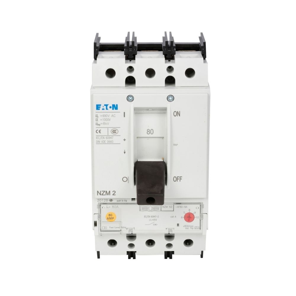 Eaton Leistungsschalter 269187 Typ NZMN2-AF200-NA Leistungsschalter, 3p, 200A Die Leistungsschalter der Serie NZM..-AF..NA decken mit nur vier kompakten Baugrößen alle Anwendungsfälle ab und sind für den weltweiten Einsatz geeignet. Die Montage ist immer flexibel durch modulare Funktionsgruppen. Mit thermomagnetischem Auslöser für den Anlagen- und Kabelschutz. Überlastauslöser fest eingestellt. Hinweise Schalter entsprechen sowohl UL/CSA als auch IEC Bestimmungen. IEC-Schaltleistungswerte auf dem Leistungsschild enthalten., Alte Herstellerbezeichnung Klöckner Möller Herstellertyp 269187 EAN Nr. 4015082691875 Warengruppe Eaton Leistungsschalter