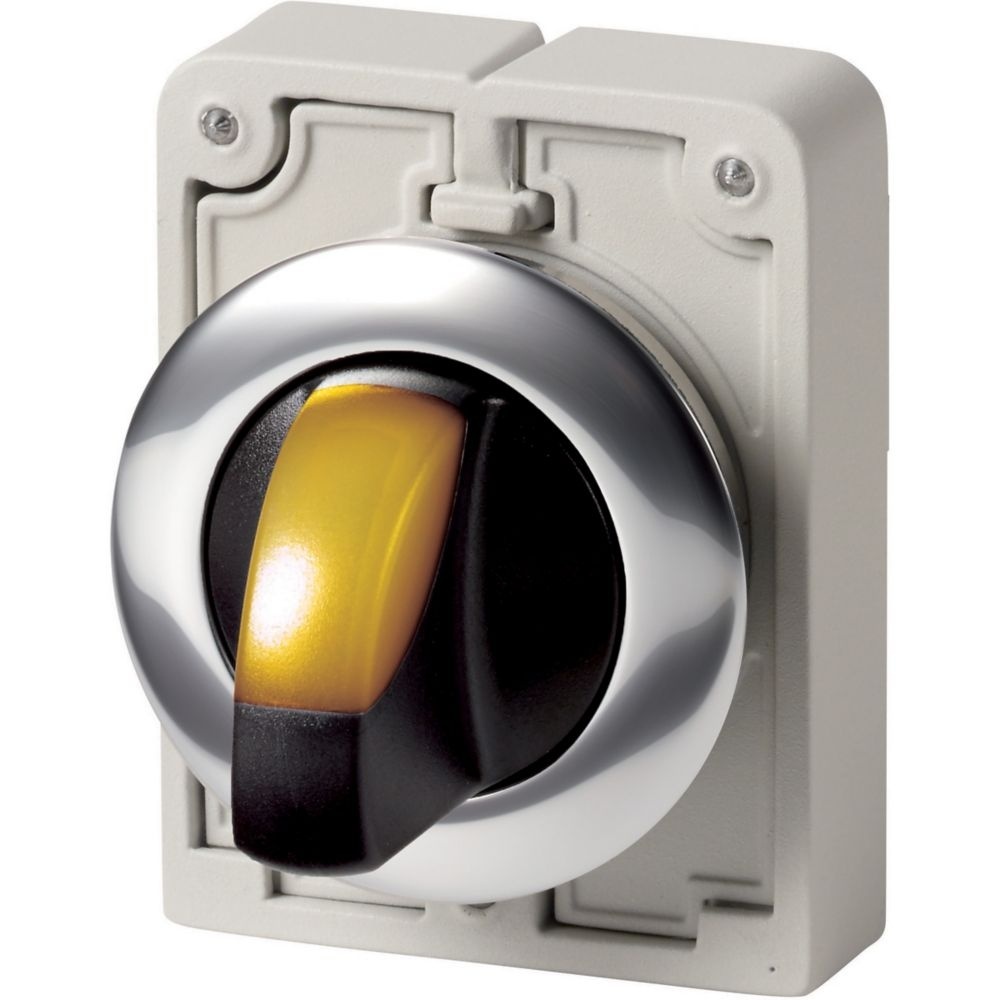 Eaton Leuchtwahltasten 187127 Typ M30C-FWLKV-Y Leuchtwahltaste, Sortiment: RMQ-Titan, Einzelgerät, Bauform: mit Knebelgriff, rastend, 2 Stellungen (V-Stellung), Farbe Knebelgriff: gelb, Schutzart: IP66, Frontring Metall, Anbindung an SmartWire-DT: ja, mit RMQ-SWD-Anschaltungen, Frontabmessung: Ø 36 mm, Hinweise: Rast-/Tastfunktion mit Codierteilen M22-XC-Y veränderbar, Normen und Bestimmungen: IEC/EN 60947, VDE 0660 Hersteller Eaton Typ M30CFWLKVY EAN Nr. 4015081821761 Warengruppe Eaton Befehls/Meldegeräte