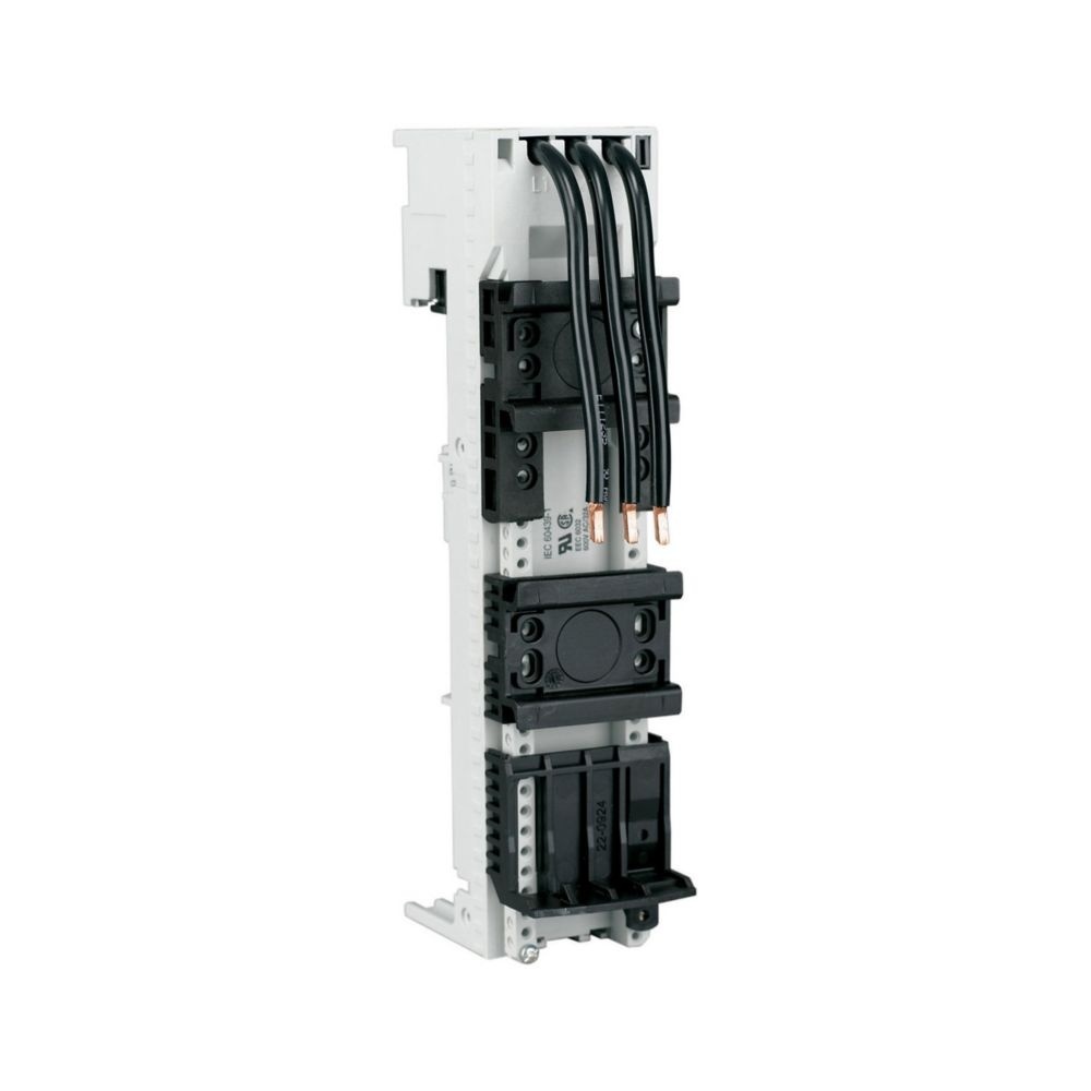 Eaton Sammelschienenadapter 101452 Typ BBA0-32 Sammelschienenadapter, 45 mm, 32 A, Tragschiene: 2 45mm Sammelschienenadapter für 60mm Sammelschienensystem, zwei Tragschienen, drei vorkonfektionierte Leitungen (AWG10/6mm²) zum Anschluss an Schaltgerät, verwendbar für Motorschutzschalter PKZM0, PKE und Direktstarter/ MSC-D(E)(A) mit Leistungsschütz DILM17 bis DILM32, Bemessungsbetriebsstrom: 32A Hersteller Eaton Nr. 101452 Typ BBA0-32 EAN Nr. 4015081013722 Warengruppe Eaton Motorschutzschalter