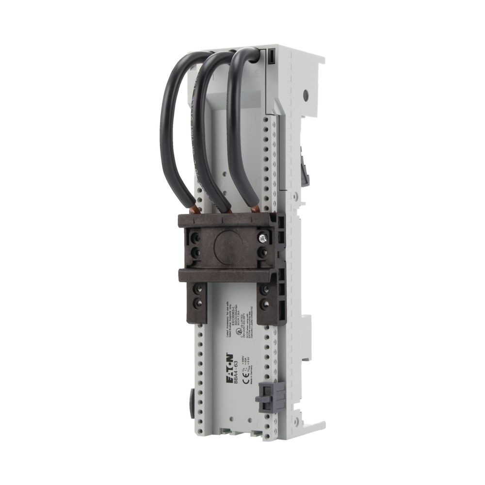 Eaton Sammelschienenadapter 101457 Typ BBA4-63 Sammelschienenadapter, 54 mm, 63 A, Tragschiene: 1 55mm Sammelschienenadapter für 60mm Sammelschienensystem, eine Tragschiene, drei vorkonfektionierte Leitungen (AWG8/10mm²) zum Anschluss an Schaltgerät, verwendbar für Motorschutzschalter PKZM4, PKE65, Bemessungsbetriebsstrom: 63A Hersteller Eaton Nr. 101457 Typ BBA4-63 EAN Nr. 4015081013777 Warengruppe Eaton Motorschutzschalter