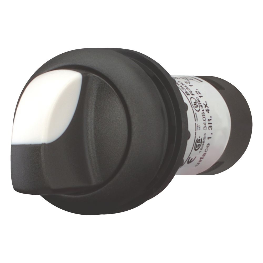Eaton Wahltaste 121607 Typ C22S-WRK3-K02 Wahltaste, mit Knebelgriff, rastend, 2 Ö, Schraubanschluss, 3 Stellungen, Frontring Schwarz Wahltaste, Sortiment: RMQ compact, Komplettgerät, Bauform: mit Knebelgriff, rastend, Schraubanschluss, 3 Stellungen, Schutzart: IP65, Frontring Schwarz, Anbindung an SmartWire-DT: nein, 2 Ö,=Sicherheitsfunktion, durch Zwangsöffnung nach IEC/EN 60947-5-1, Weg des Bedienteils und Betätigungskraft nach DIN EN 60947-5-1, K.5.4.1 Zwangsöffnungsweg: mm 4.65, Weg des Bedienteils und Betätigungskraft nach DIN EN 60947-5-1, K.5.4.1 maximaler Weg: mm 5.7, Weg des Bedienteils und Betätigungskraft nach DIN EN 60947-5-1, K.5.4.1 Mindestkraft für Zwangsöffnung: N 30, Zwangsöffnung (ZW): ja, Normen und Bestimmungen: IEC/EN 60947-5-1, VDE 0660, Schutzart: IP65 Hersteller Eaton Schaltgeräte EAN Nr. 4015081194254 Warengruppe Eaton Befehls/Meldegeräte