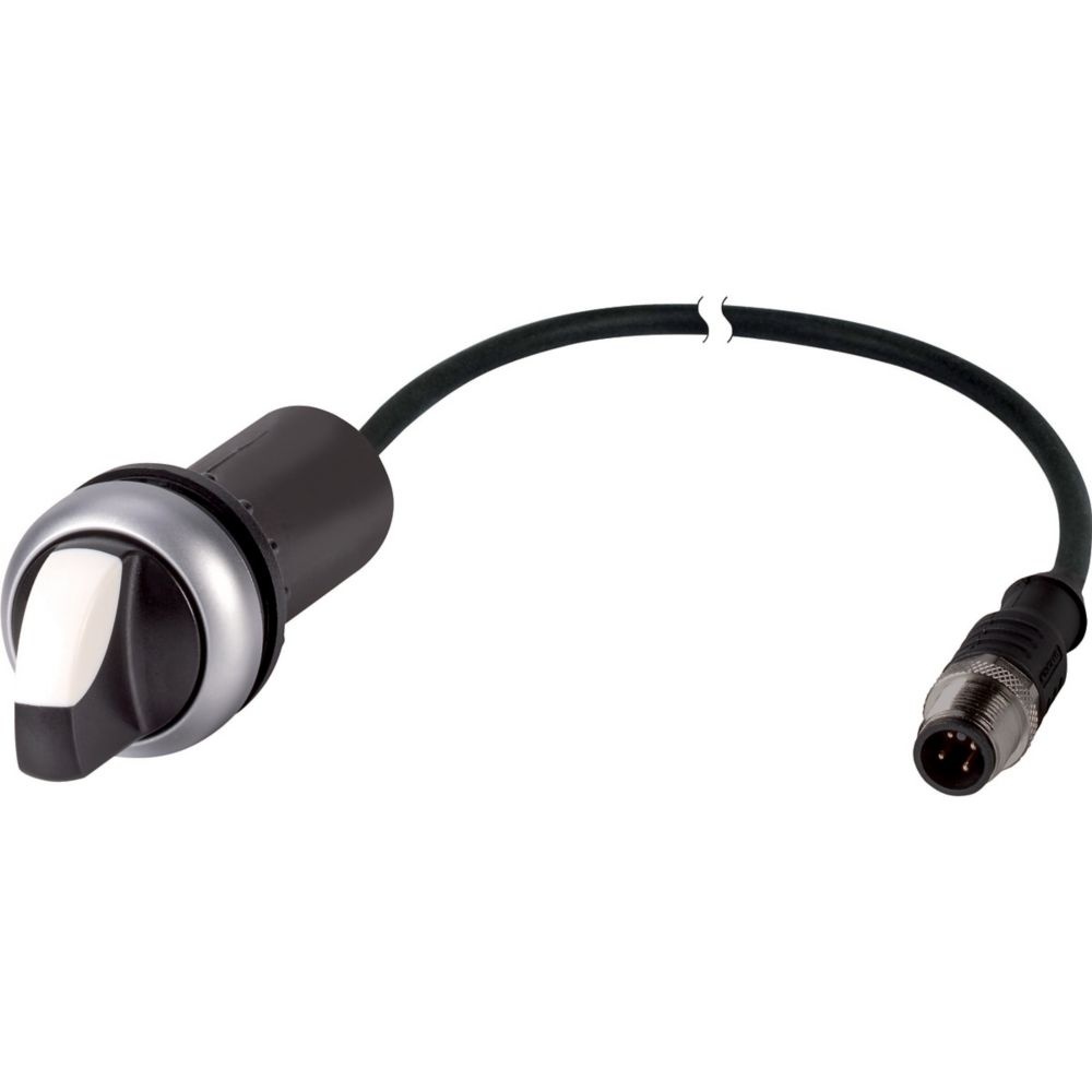 Eaton Wahltaste 186119 Typ C22-WRK-K10-P5 Wahltaste, Sortiment: RMQ compact solution, Komplettgerät, Bauform: mit Knebelgriff, rastend, Kabel (schwarz) mit M12A-Stecker, 4-polig, Kabellänge: 1 m, 2 Stellungen, Schutzart: IP66 (frontseitig), IP65 (rückseitig), Frontring Titan, Anbindung an SmartWire-DT: nein, Kontaktbestückung S = Schließer 1 S, Normen und Bestimmungen: IEC/EN 60947-5-1, VDE 0660 Hersteller Eaton Typ C22WRKK10P5 EAN Nr. 4015081816200 Warengruppe Eaton Befehls/Meldegeräte