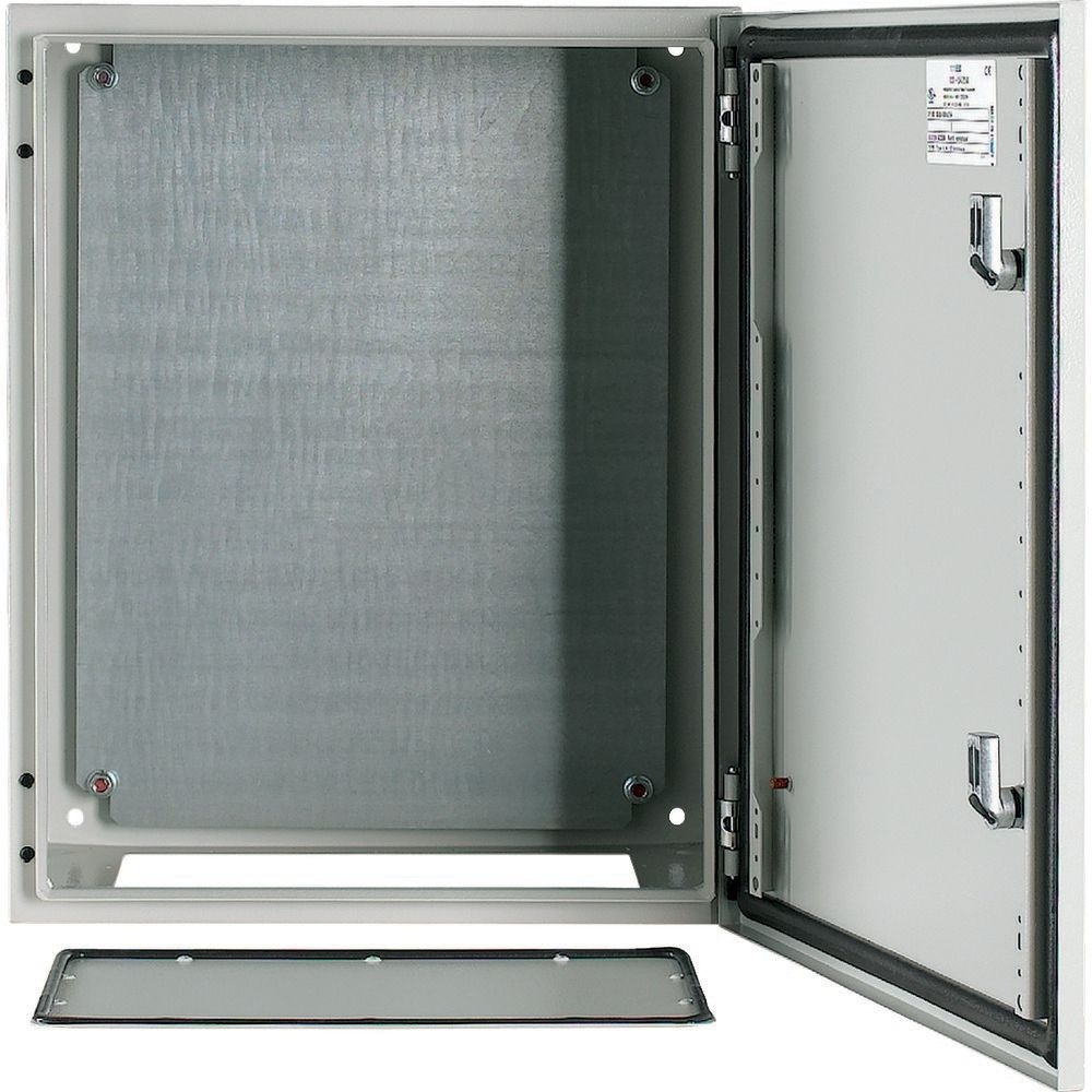 Eaton Wandschrank 111690 Typ CS-54/250 Wandschrank, +Montageplatte, HxBxT=500x400x250mm Wandgehäuse CS, Tür mit durchgehend eingeschäumter Polyurethan-Dichtung, Stoßfestigkeits-Katagorie IK09 nach EN 62262, Bodenplatte mit geschäumter Dichtung, Dichtung geschützt im tiefgezogenen Bereich, Eintürig, Türanschlag rechts, Türöffnungswinkel 120 Grad, Tür-Scharnierstifte mit Quick-Change-Technologie, Türprofilleiste mit Perforierung im 25-mm-Abstand zur Befestigung von DIN-Tragschienen oder zur Fixierung von Kabelschläuchen und Leitungen, Standardisiertes Verschlusssystem mit Vorreiber komplett aus Metall, mit Stahlblech-Montageplatte, Lieferumfang Schloss, 3mm Doppelbart, Sinnvolle Zusatzausrüstung z.B. Dreh-Komfortgriff PHZ-A-ADD-ON mit Zylinderschloss PHZ-E10/30-GS., Alte Herstellerbezeichnung Klöckner Möller Herstellertyp 111690 EAN Nr. 4015081112494 Warengruppe Eaton Stahlblechgehäuse