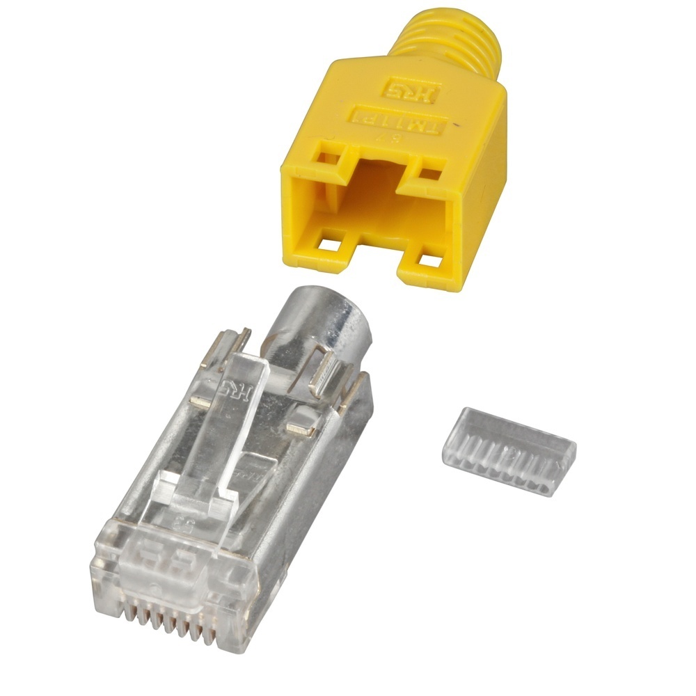 EFB Elektronik Stecker H7540.5-100 RJ45-Hirose Stecker TM11 gelb 100 Stk, 3 Elemente, Cat. 5e Bis 100 MHz (Cat.5e) für Litzen. Aderisolierung ca. 0.9-1.0 mm. Kabeldurchmesser max. 5.8 mm. Das Set besteht aus RJ-Stecker, Knickschutztülle und Guide Plate. EAN Nr. 4049759116040 Warengruppe EFB Installationsmaterial