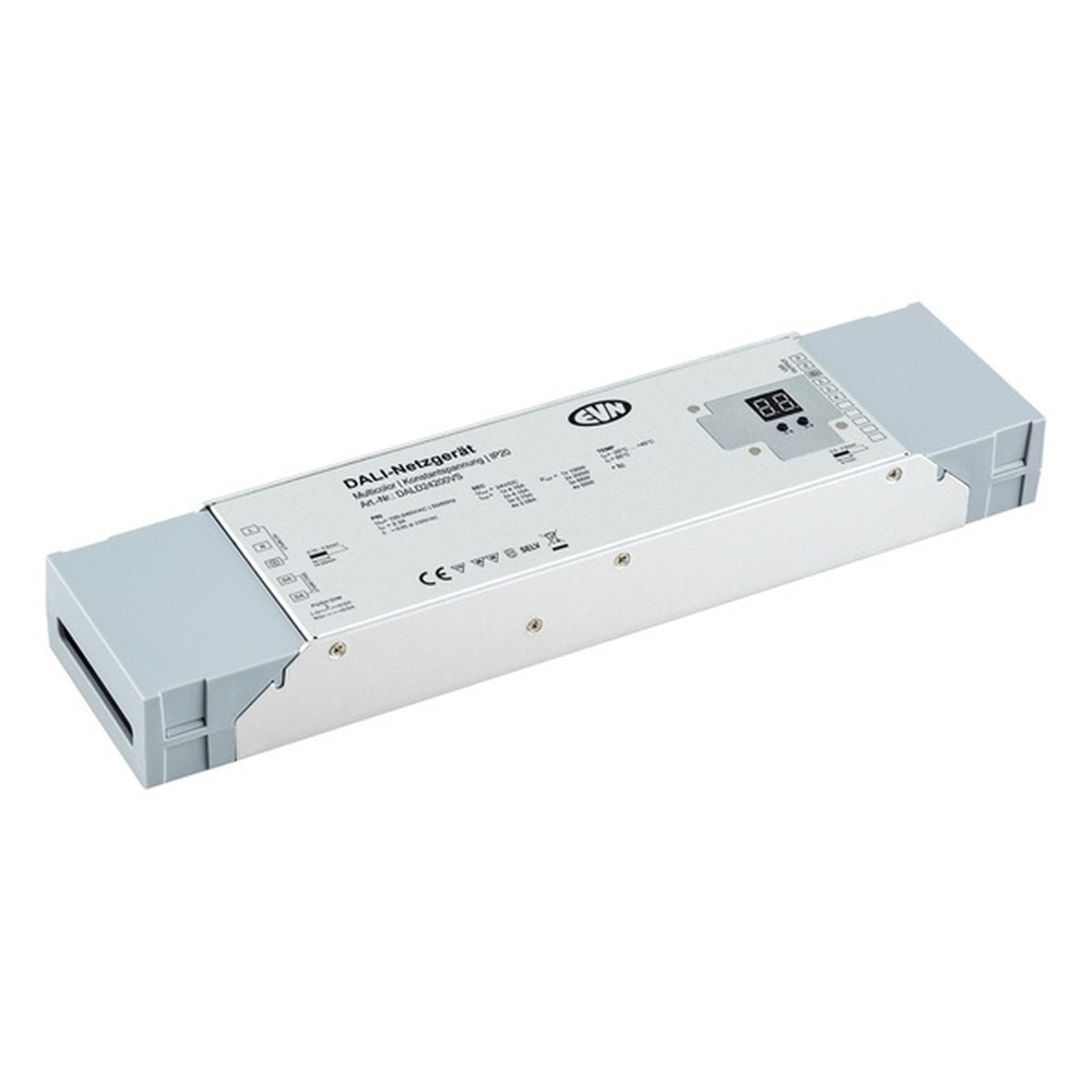 EVN DALI Multicolor Empfänger DALD24200VS, DALI Multicolor-Empfänger inkl. Netzgerät. DALI-Multicolor-Empfänger mit integriertem Netzgerät fuer Unicolor-, Tunable-White-, RGB-, und RGBW-Leuchten mit manueller oder automatischer DALI Adressen Einstellung. Ein Zusätzliches Betriebsgerät ist nicht erforderlich, da der Empfänger gleichzeitig als solches fungiert. Der Ausgang ist als 1-4 Kanal Einstellbar. Optional ist der Empfänger auch ueber Push-L (als 1-Kanal) dimmbar. Anschluesse: 1x Eingang fuer DALI-Bus oder Push-L, 1x Eingang fuer 100-240V/AC und 4x Ausgang fuer 24V/DC. Die Schraubklemmen sind fuer Kabel von 0,75mm²,-2,5mm², primär und von 0,5mm²,-2,5mm², sekundär geeignet. Technische Daten: ta: -20 Grad,C-45 Grad,C, tc: 85 Grad,C. Bei Unicolor-Anwendungen können bis zu 200W an einem Kanal angeschlossen werden. Protokoll: DT6, DALI2. Hersteller EVN Leuchten Nummer DALD24200VS EAN Nr. 4037293023191 Warengruppe EVN Zubehör