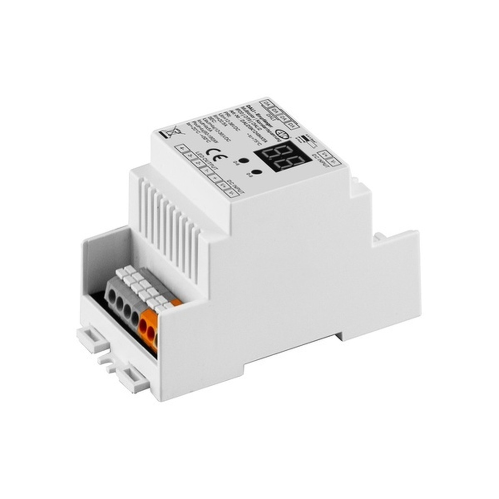 EVN Multicolor Empfänger DALDSK12484X5A DALI-Multicolor-Empfänger für 12, 24, 36, 48V/DC Der DALI-Multicolor-Empfänger kann für Unicolor-, Tunable-White-, RGB-, und RGBW-Leuchten verwendet werden. Die entsprechende Einstellung der Steuerung erfolgt über ETS. Geeignet für LED-Leuchten mit 12, 24, 36 und 48V/DC Betriebsspannung. Die tatsächliche Eingangsspannung ist abhängig von der benötigten Spannung der zu versorgenden Leuchten. Anschlüsse: 1x Eingang, so wie 1x Ausgang für DALI-Bus für Durchgangsverdrahtung, 1x Eingang, so wie 1x Ausgang für 12-48V/DC für Spannungsversorgung zur Durchgangsverdrahtung und 4x Ausgang. Die Steckklemmen sind für Kabel von 0,5mm²-1,5mm² geeignet. Technische Daten: ta: -20 GradC-50 GradC, tc: 75 GradC, max. Ausgangsleistung je Kanal: 5A bei 12-36V/DC, 2A bei 48V/DC (60W bei 12V/DC, 120W bei 24V/DC, 180W bei 36V/DC und 96W bei 48V/DC). Konform Standardprotokoll IEC 60929. Protokoll: DT6, DALI2 Hersteller EVN Nr. DALDSK12484X5A EAN Nr. 4037293031325 Warengruppe EVN Zubehör