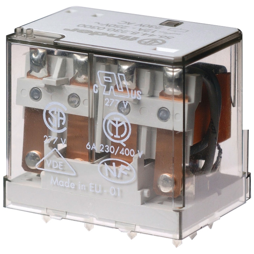 Finder Printrelais 56.44.8.125.0000 Leistungs-Printrelais 4 Wechsler für 12 A/250 V AC, Kontaktmaterial AgNi, Spulendaten 125 V AC, 2 VA, 2560 Ohm, Relaisschutzart RT I Hersteller Finder Nr. 564481250000 EAN Nr. 8012823250014 Warengruppe Finder Relais