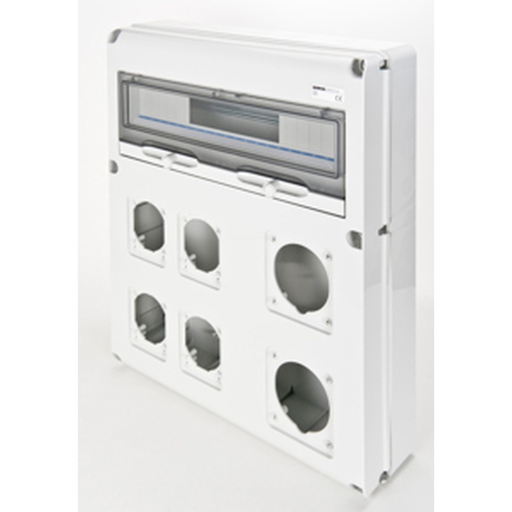 Gewiss Kombinationsgehäuse GW68021N IEC Kombinationsgehaeuse mit 4 Flanschen 16A und 2x63A 20TE IP65 IEC Leergehaeuse fuer Steckdosenkombinationen. Mit Flanschoeffnungen zur einfachen und schnellen Montage von IEC Anbausteckdosen. Verteilerraum unter transparenter Abdeckung zur freien Bestueckung mit Reiheneinbaugeraeten. Der Verteilerraum kann durch ein Sicherheitsschloss nachgeruestet werden. Das Oberteil ist durch Verwendung von Kugelkopfschrauben standardmaessig beidseitig als Scharnier ausgefuehrt. 2 Flansche LxB 110x100 fuer IEC Anbausteckdoes 63A und 4 Flansche LxB 95x80 mm fuer IEC Anbausteckdosen 16 32A Abdeckrahmen der Baureihe System GW27401 GW27403. 2 Blindflansche fuer IEC Steckdose 16 32A und 1 Blindflansch fuer IEC Steckdose 63A sind im Lieferumfang enthalten. Gehaeuseschutzart IP65 Die Schutzart wird durch die Verwendung der Steckdosen und Leitungseinfuehrungen bestimmt . Hersteller Gewiss EAN Nr. 8011564744882 Warengruppe Gewiss Gehäuse