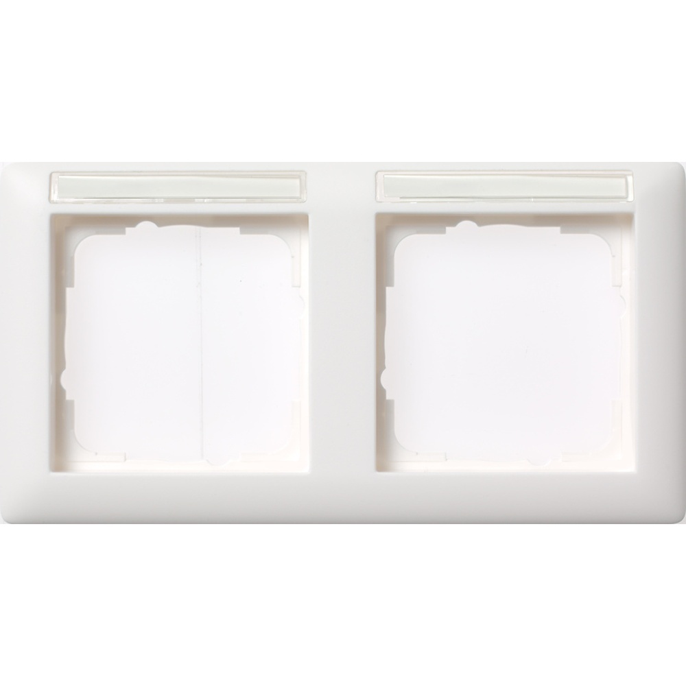 Gira Abdeckrahmen 2fach 109203 Abdeckrahmen 2f BSF waager. Standard 55 Reinweiß Abdeckrahmen für Kombinationenbruchsicher, beschriftbar 2fach waagerecht Standard 55 Reinweiß glänzend Bruchsicher.Abdeckrahmen mit transparentem Sichtfenster zur Beschriftung der Einsätze. Besonders geeignet für Objekte, in denen die Elektroinstallation gekennzeichnet und dokumentiert werden muss, beispielsweise in Verwaltungen, gewerblichen Betrieben, Flughäfen, Unternehmen und Krankenhäusern. Sprühnebeldicht.Nicht zu verwenden mit:Dichtungsset IP 44, Aufputz Gehäuse flache Bauweise, Aufputz Gehäuse. EAN Nr. 4010337092032 Warengruppe Gira Standard 55
