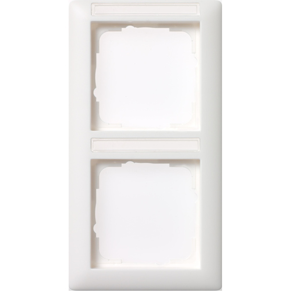 Gira Abdeckrahmen 2fach 110203 Abdeckrahmen 2f BSF senkr. Standard 55 Reinweiß Abdeckrahmen für Kombinationenbruchsicher, beschriftbar 2fach senkrecht Standard 55 Reinweiß glänzend Bruchsicher.Abdeckrahmen mit transparentem Sichtfenster zur Beschriftung der Einsätze. Besonders geeignet für Objekte, in denen die Elektroinstallation gekennzeichnet und dokumentiert werden muss, beispielsweise in Verwaltungen, gewerblichen Betrieben, Flughäfen, Unternehmen und Krankenhäusern. Sprühnebeldicht.Nicht zu verwenden mit:Dichtungsset IP 44, Aufputz Gehäuse flache Bauweise, Aufputz Gehäuse. EAN Nr. 4010337102038 Warengruppe Gira Standard 55
