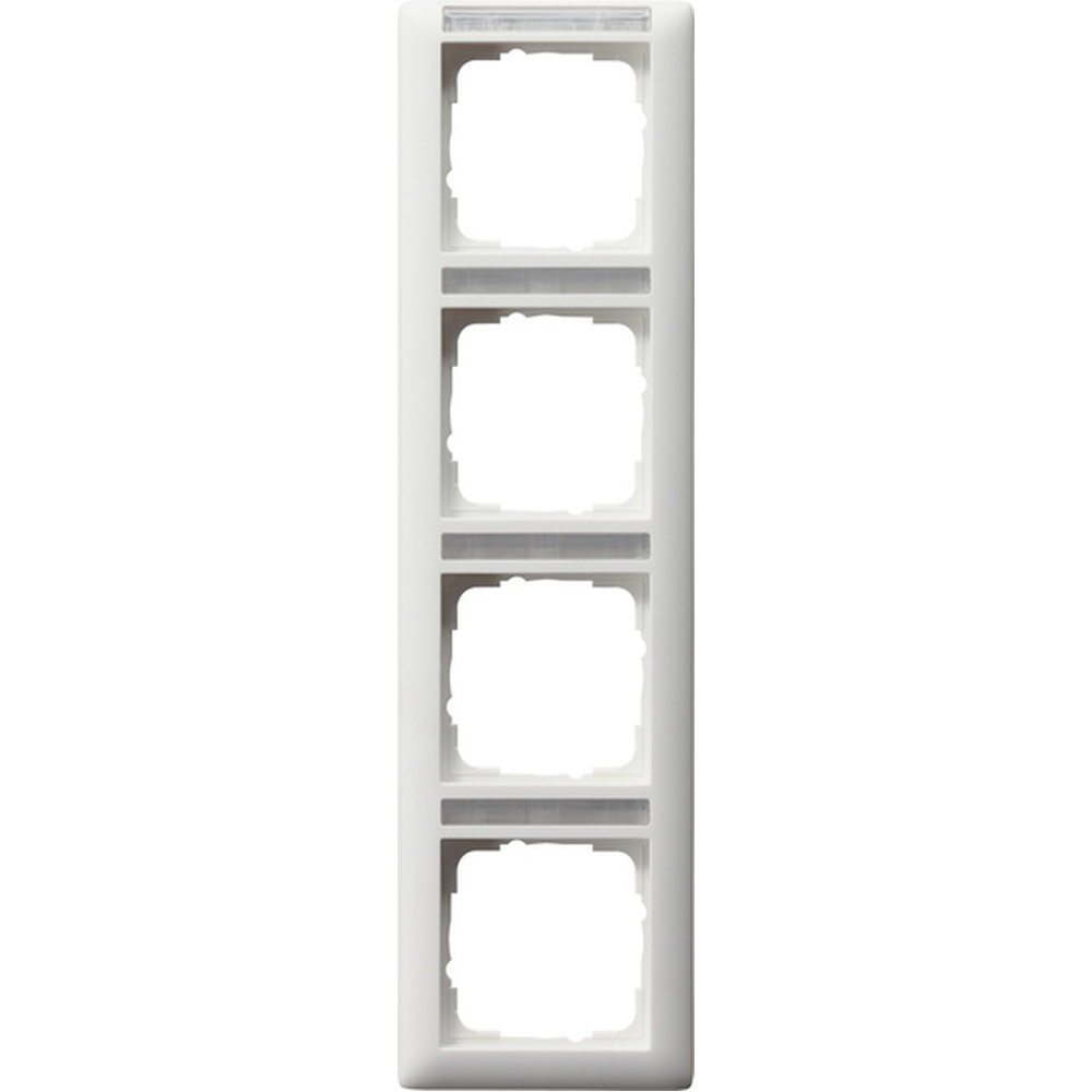 Gira Abdeckrahmen 4fach 111427 Abdeckrahmen 4f BSF senkr. Standard 55 Reinweiß matt Abdeckrahmen für Kombinationenbruchsicher, beschriftbar 4fach senkrecht Standard 55 Reinweiß seidenmatt Bruchsicher.Abdeckrahmen mit transparentem Sichtfenster zur Beschriftung der Einsätze. Besonders geeignet für Objekte, in denen die Elektroinstallation gekennzeichnet und dokumentiert werden muss, beispielsweise in Verwaltungen, gewerblichen Betrieben, Flughäfen, Unternehmen und Krankenhäusern. Sprühnebeldicht.Nicht zu verwenden mit:Dichtungsset IP 44, Aufputz Gehäuse flache Bauweise, Aufputz Gehäuse. EAN Nr. 4010337008927 Warengruppe Gira Standard 55