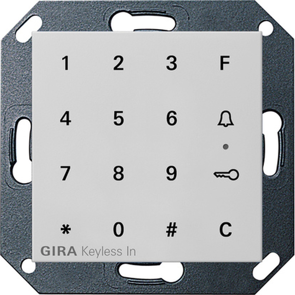 Gira Keyless In Codetastatur 2605015 Gira Keyless In Codetastatur System 55 Grau m Gira Keyless In Codetastatur Grau matt Merkmale: Montage in eine Gerätedose. Stand-alone-Gerät oder in Kombination mit dem Gira Türkommunikations-System. Beim Stand-alone-Betrieb Nutzung der integrierten potenzialfreien Relaiskontakte für Schalthandlungen, z. B. für Türöffner mit eigener Spannungsversorgung (z. B. handelsüblicher Klingeltrafo). Inbetriebnahme durch Direkt-Konfiguration ohne PC oder Programmiersoftware. Ein- und Ausgänge: Schaltkontakt: Zwei Relais mit potenzialfreien Wechselkontakten Belastbarkeit AC DC 24 V 1,6 A. Zwei Anschlüsse für Spannungsversorgung. Codetastatur als Zutrittskontrollsystem mit kapazitiv wirkenden und damit verschleißfreiem Tastenfeld. Keine erkennbare Abnutzung häufig benuzter Ziffernkombination. Stand-alone-Gerät oder in Kombination mit dem Gira Türkommunikations-System als Türrufsystem für Gebäude mit mehreren Wohneinheiten. Sondertaste C : Löschen einer Falscheingabe. Sondertaste Schlüssel : Nach richtiger Code-Eingabe direkte Türöffnung. Sondertaste Glocke : Gezielte Anwahl von Wohnungsstationen in großen Objekten. Sondertaste F : Schaltfunktionen mit Schaltaktoren des Gira Türkommunikations-Systems. Homogene blaue LED-Beleuchtung der Ziffern und Sonderzeichen bei Nacht. Master PIN-Nummer auf beiliegender versiegelter Sicherheitskarte bei Verlust der Administrator-PIN-Nummer. Die Codetastatur kann bis zu 255 Codes verwalten. Bis zu 32-stellige Codes möglich. Akustische Rückmeldung bei Tastenbetätigung. 3-farbige LED-Statusanzeige bei der Programmierung und während der Bedienung. Warnton bei unberechtigter Entnahme des Tastaturaufsatzes zur Sabotageerkennung. Sabotageschaltung mit Schaltaktor im Gira Türkommunikations-System. Den beiden integrierten Wechslerrelais können zwei unterschiedliche Codes zugeordnet werden, z. B. Code 1: Türöffnung, Code 2: Schalten des Außenlichts. Ein- und Ausgänge: Steckerleiste Verbindungskabel für Gira Türkommunikations-System. Hinweise: Mit dem TKS-IP-Gateway können die Keyless In-Geräte an den Gira HomeServer angebunden werden. Dadurch sind intelligente Verknüpfungen möglich. So können z. B. temporäre oder einmalige Zugangsberechtigungen ganz einfach erteilt werden. Alle Daten inkl. der Zugangsberechtigungen lassen sich dann zentral und flexibel über den Gira HomeServer verwalten. Integration in das Profil 55 möglich. Der Gira AppShop ist der Marktplatz für interessante Lösungen und Anwendungen der intelligenten Gebäudetechnik. Inzwischen sind dort mehr als 200 Apps erhältlich, darunter Anwendungsbeschreibungen, Plug-ins, Funktionsvorlagen, Logikbausteine und Musterprojekte. Entdecken Sie jetzt Anwendungen für die Gira Keyless In Codetastatur. www.appshop.gira.de. Hersteller Gira Schalterprogramm EAN Nr. 4010337084662 Warengruppe Gira System 55