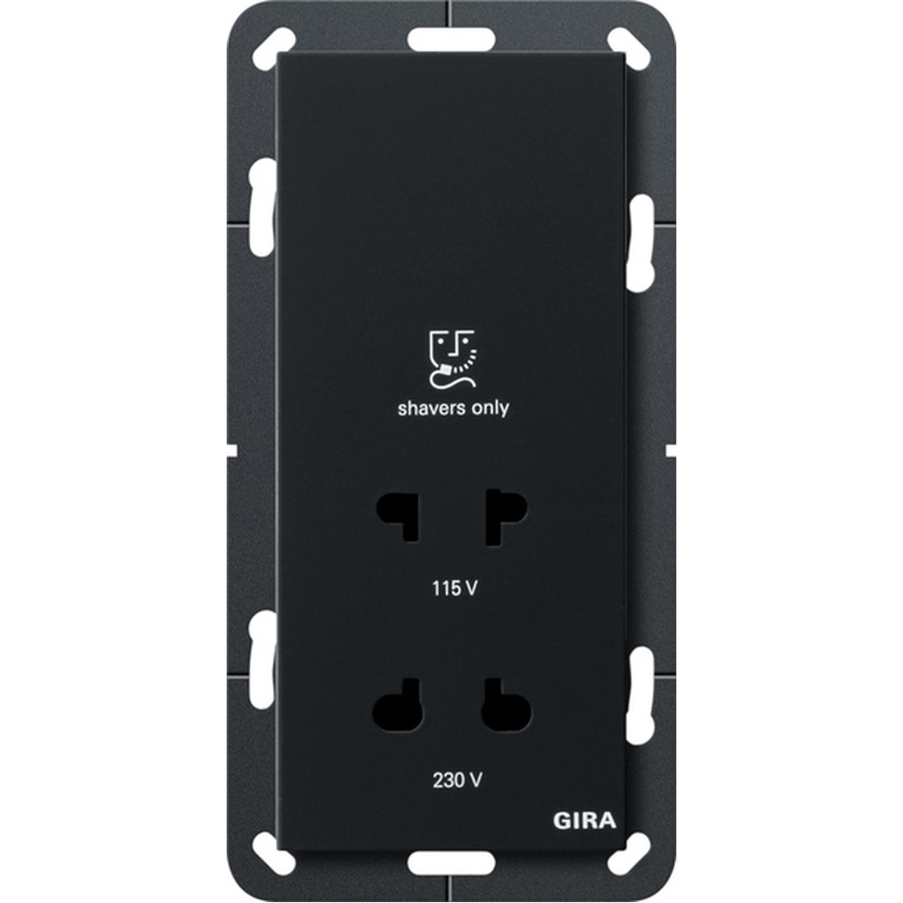 Gira Rasiersteckdose 2820005 Rasiersteckd. 115 230 V System 55 Schwarz m Rasiersteckdose DIN EN 61558 2 5 115 230 V~ für Abdeckrahmen 2fach ohne Mittelsteg Schwarz matt Hersteller Gira Schalterprogramm EAN Nr. 4010337037323 Warengruppe Gira System 55