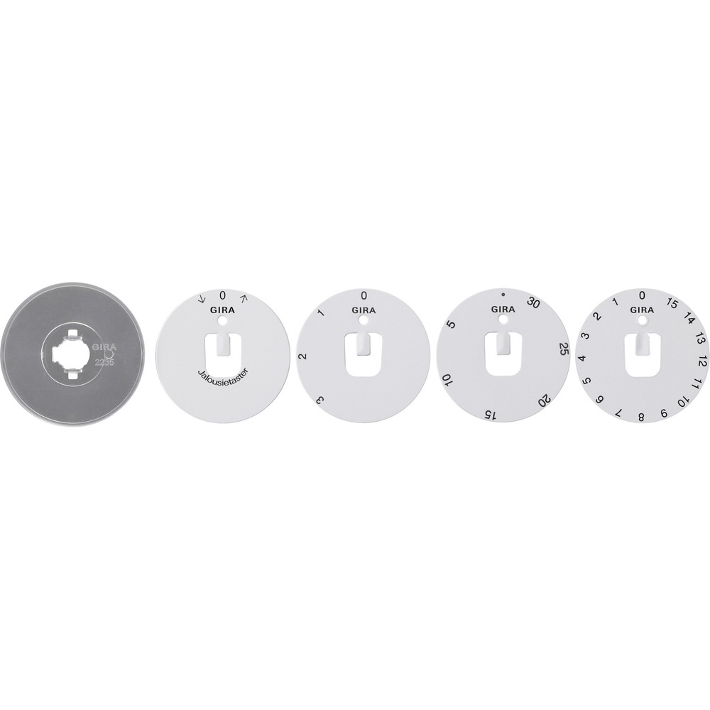 Gira Symbolscheiben 818300 Set Symbolscheiben für Jalousie- und Zeitschalter mit Knebel Hersteller Gira Schalterprogramme Typ Set Sym.scheiben Zub. EAN Nr. 4010337031727 Warengruppe Gira Zubehör