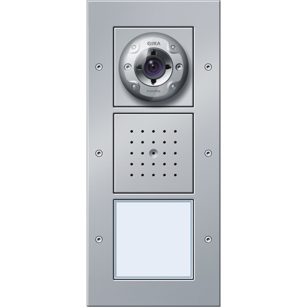 Gira Türstation Video 126965 Türstation Video AP 1f Türko Farbe Alu Türstation mit Farbkamera, Türlautsprecher und Ruftaster 1fach als komplett vormontierte Einheit für die senkrechte Aufputz Montage. Die Türstation Video AP hat folgende Produktmerkmale: Komplett vormontierte Aufputz Türstation im TX_44 Design, dadurch schnelle und saubere Installation.. Signalübertragung und Versorgung der Teilnehmer über den verpolungssicheren und kurzschlussfesten 2 Draht Bus.. Verwindungssteifes Aufputzgehäuse durch Aluminiumprofil.. Abdeckrahmen aus bruchsicherem Thermoplast mit hoher UV Stabilität sowie einer kratzfesten, pflegeleichten Oberfläche.. Diebstahlschutz mittels Torx Schrauben.. Einmann Inbetriebnahme durch einfache Inbetriebnahmeprozedur.. Wetterfester Lautsprecher.. Hochwertiges Elektretmikrofon.. Freisprechfunktion Sprachgesteuertes Gegensprechen mit Echo und Hintergrund Geräuschunterdrückung .. Akustisches Quittiersignal bei Ruftastenbetätigung.. Sprachlautstärke einstellbar.. Weiße Ruftastenbeleuchtung in LED Technologie.. Spritzwasserdichte Ruftastenabdeckung aus schlagfestem Kunststoff.. Namensschild des Ruftasters ohne Werkzeug und ohne Rahmendemontage austauschbar.. Professionelle Beschriftung über den Gira Beschriftungsservice www.beschriftung.gira.de oder die Gira Beschriftungssoftware. ..Die Farbkamera hat die folgenden Eigenschaften: Automatische Tag Nachtumschaltung: Die Kamera schaltet ab einer definierten Umgebungshelligkeit von Tagbetrieb Farbdarstellung auf Nachtbetrieb Schwarzweißdarstellung und umgekehrt. Aufgrund der hohen Lichtempfindlichkeit im Nachtbetrieb werden gute Darstellungsergebnisse auch bei schlechten Lichtverhältnissen erreicht.. Leuchtdioden sorgen im Nachtbetrieb für eine gleichmäßige Gesichtsfeldausleuchtung im Nahbereich.. Kamera horizontal und vertikal um 20 manuell schwenkbar. In Kombination mit dem Weitwinkelobjektiv ergibt sich daraus ein sehr großer Sichtwinkel.. Automatische Gegenlichtkompensation.. Automatischer Weißabgleich.. Automatische Verstärkungsregelung AGC .. Integrierte Kameraheizung mit Temperaturerfassung.. Spritzwasserdichte Abdeckung.. Kamera Abdeckung aus schlagfestem Kunststoff, bei Beschädigung, z.B. durch Vandalismus, leicht austauschbar... Spannungsversorgung: DC 26 V + 2 V Busspannung Anschlüsse: 2 Schraubklemmen 2 Draht Bus 2 Schraubklemmen Zusatzversorgung Abmessungen: BxHxT 110x253x19 mm ohne Kamera BxHxT 110x253x40 mm mit Kamera Abmessung Namensschild: BxH 62x62 mm Bildaufnahmeelement: CCD Sensor 0,85 cm 1 3 Weitwinkelobjektiv: 150 Öffnungswinkel Sichtbarer Erfassungsbereich: Erfassungswinkel der Kamera 100 Erfassbarer Bereich bei 20 Schwenkung : 140 Farbsystem: PAL Bildelemente: 500 Hx582 V Horizontale Auflösung: 380 TV Linien Umschaltschwelle Farb auf SW Betrieb: 1 lx Lichtempfindlichkeit im SW Betrieb: 0,1 lx Elektronische Blende Verschlusszeit: bis zu 1 100000 s IR Filter: integriert Empfohlene Kamera Einbauhöhe: 1,50 m Temperaturbereich 20 C bis +50 C Schutzart: IP44 EAN Nr. 4010337269656 Warengruppe Gira Türkommunikation