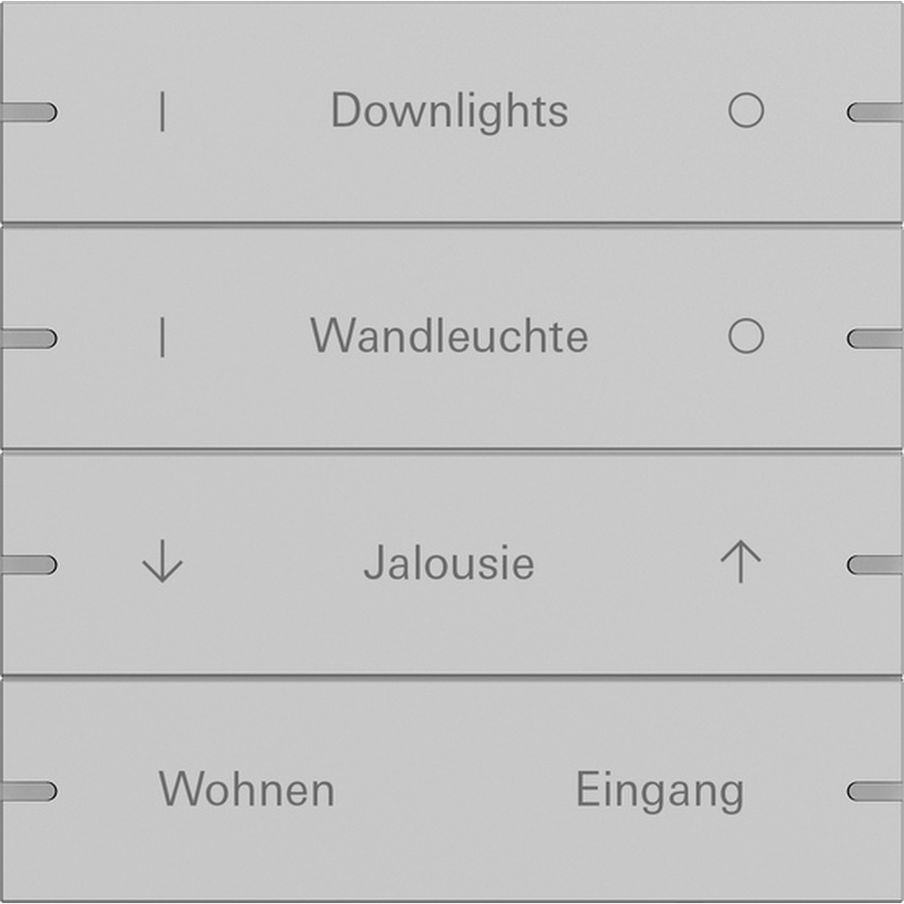 Gira Wippenset 4fach 5034915 Wippenset 4f indiv. Tastsens.4 TS4 Grau m(lack.) Wippenset 4fach individuell für Tastsensor 4 Grau matt (lackiert) Hinweise: Beschreibbare Wippensets können mit einer individuellen Beschriftung versehen werden. Die Bestellung wird über den Großhandel abgewickelt, der beim Bestellvorgang der Wippen angegeben wurde. Dieses Produkt kann ausschließlich über den Gira Beschriftungsservice bestellt werden. Professionelle Beschriftung über den Gira Beschriftungsservice www.beschriftung.gira.de. Hersteller Gira Schalterprogramm EAN Nr. 4010337098171 Warengruppe Gira System 55