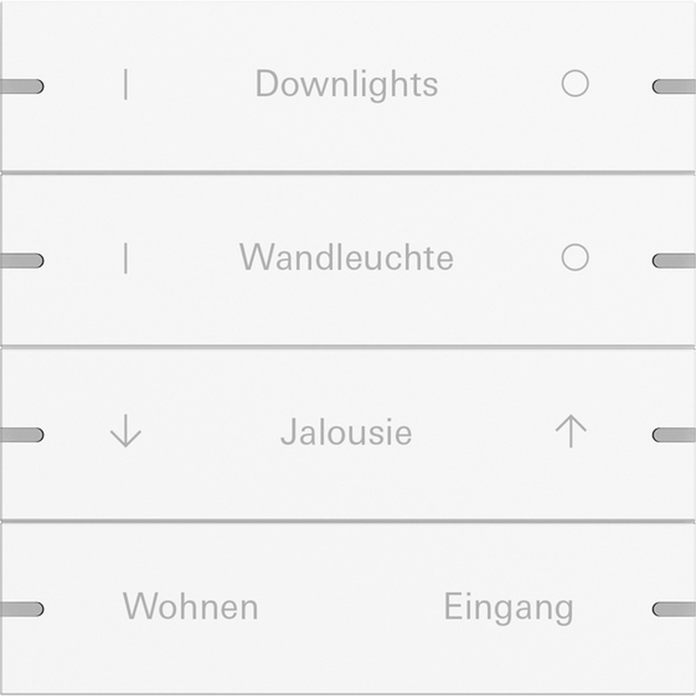 Gira Wippenset 4fach 5034927 Wippenset 4f indiv. Tastsens.4 TS4 Reinweiß m(lack.) Wippenset 4fach individuell für Tastsensor 4 Reinweiß seidenmatt (lackiert) Hinweise: Beschreibbare Wippensets können mit einer individuellen Beschriftung versehen werden. Die Bestellung wird über den Großhandel abgewickelt, der beim Bestellvorgang der Wippen angegeben wurde. Dieses Produkt kann ausschließlich über den Gira Beschriftungsservice bestellt werden. Professionelle Beschriftung über den Gira Beschriftungsservice www.beschriftung.gira.de. Hersteller Gira Schalterprogramm EAN Nr. 4010337098317 Warengruppe Gira System 55