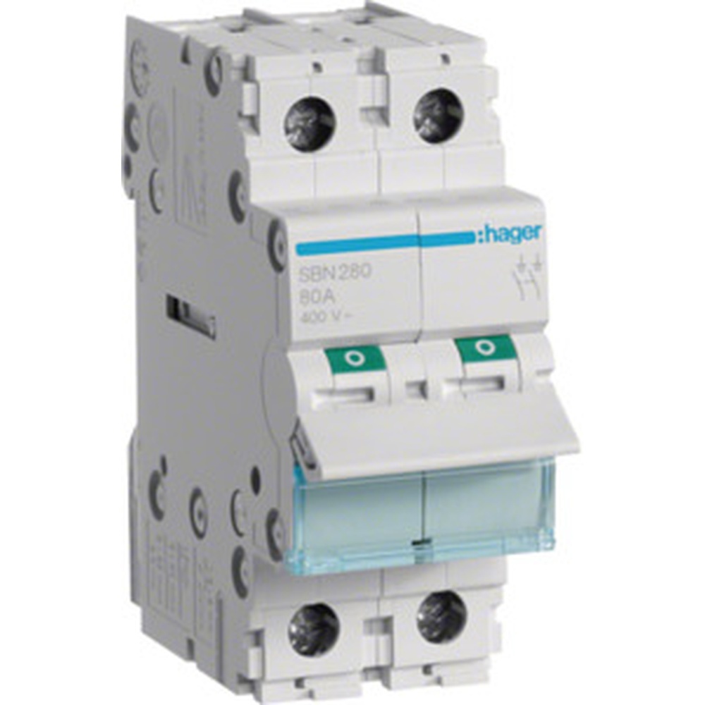 Hager Ausschalter SBN280 Hager Installation Ausschalter 80A 2 Schließer 400V AC 2LE. Ausschalter nach EN 60669-1/669-2-4 mit VDE Zeichen, Berührungsschutz IP2x nach BGV A3. Bi Connect Klemme Zugang, Sprungschaltewerk zum schnellen ein und ausschalten. Geeignet zum nachtraeglichen Anbau von Zusatzei EAN Nr. 3250615510259 Hager Artikel Nr. SBN280 Warengruppe Hager Schalter Taster