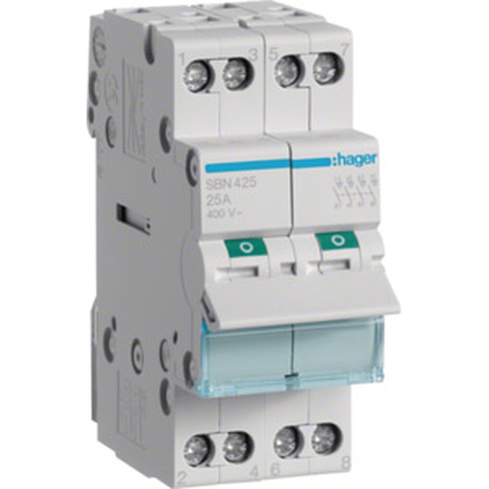 Hager Ausschalter SBN425 Hager Installation Ausschalter 25A 4 Schließer 400V AC 2PLE. Ausschalter nach EN 60669-1/669-2-4 mit VDE Zeichen, Berührungsschutz IP2x nach BGV A3. Geeignet zum nachtraeglichen Anbau von Zusatzeinrichtungen, Beschriftungsmöglichkeit direkt am Gerät. EAN Nr. 3250615510112 Hager Artikel Nr. SBN425 Warengruppe Hager Schalter Taster