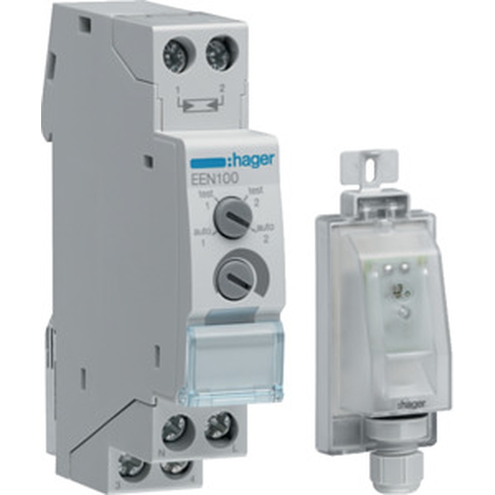 Hager Dämmerungsschalter EEN100 Hager Installation Dämmerungsschalter mit Aufbaufühler EEN003. Dämmerungsschalter misst über eine Photozelle die Beleuchtungsstärke und schaltet in Abhaengigkeit vom gemessenen und eingestellten Wert einen Stromkreis ein oder aus mit zusätzlicher Schaltzustandsanzeige. Mess EAN Nr. 3250617579308 Hager Artikel Nr. EEN100 Warengruppe Hager Schutz Mess Dämmerungsschalter