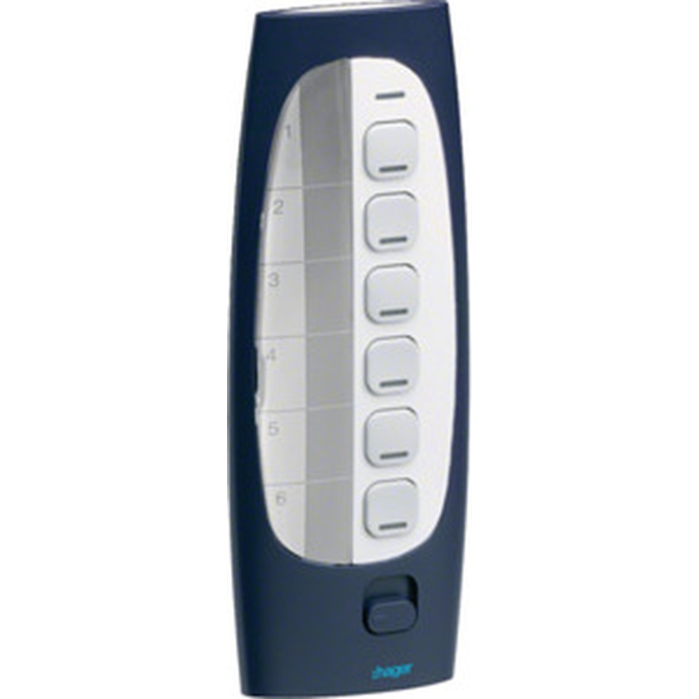 Hager Funkfernbedienung TU418 Funkfernbedien., KNX, 6Tast.+1Sch.18Kanäle Funkfernbedienung, KNX, 7 Tasten, 18 Kanäle. Funksender zum Schalten von Verbrauchern in Verbindung mit KNX fähigen Bussystemen über KNX Funk. Das Gerät setzt die Schaltinformationen in unidirektionale Befehle um. Funktionen: Schalten, Dimmen, Jalousie, Auswahl der Betriebsart bei Heizungsfunktion, Zeit, Szenenabruf. Eine mehrfarbige LED zeigt den Sende-, Konfigurations- und Batteriestatus an. Die einzelnen Tasten sind beschriftbar. Um bei Dunkelheit die sichere Ablesung bzw. Bedienung sicherzustellen kann ein Bewegungsmelder aktiviert werden, der die Tasten- und Beschriftungs LEDs kurzzeitig einschalten. Hersteller Hager EAN Nr. 3250616014183 Warengruppe Hager Schaltuhren