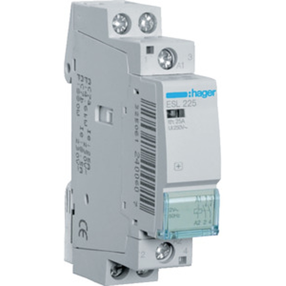 Hager Installationsschütz ESL225 Hager Installation InstallationsSchütze 25A 2S 12V. Schütze in kompakter Bauweise, gebaut nach EN 61095, DIN VDE 0637-3, Kontaktstellungsanzeige durch Anzeigefenster, plombierbar mit Plombierkappe(Zubehör), Hilfsschalter(Zubehör) sind Anflanschbar. Integriertes Beschriftung EAN Nr. 3250612400607 Hager Artikel Nr. ESL225 Warengruppe Hager Schütze Relais Zeitschalter