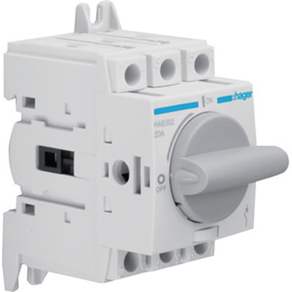 Hager Lasttrennschalter HAB302 Hager Installation Lasttrennschalter 3polig 20A für Hutschiene oder Montageplatte. Lasttrennschalter für die Montage auf Hutschiene oder Montageplatte, Drehantrieb direkt am Gerät im AUS-Zustand mit einem Vorhängeschloss verriegelbar, Gewährleistet das Ein- und Ausschalten EAN Nr. 3250613140236 Hager Artikel Nr. HAB302 Warengruppe Hager Leistungsschalter