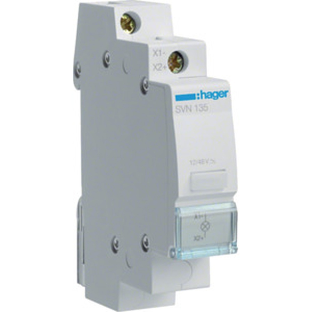 Hager LED Leuchtmelder SVN135 Hager Installation LED Leuchtmelder klar 12 + 48V AC + DC 1PLE. Leuchtmelder mit LED nach DIN VDE 710. Beruehrungsschutz nach DIN VDE 0106/100. Beschriftungsmöglichkeit direkt am Gerät. EAN Nr. 3250615725516 Hager Artikel Nr. SVN135 Warengruppe Hager Schalter Taster
