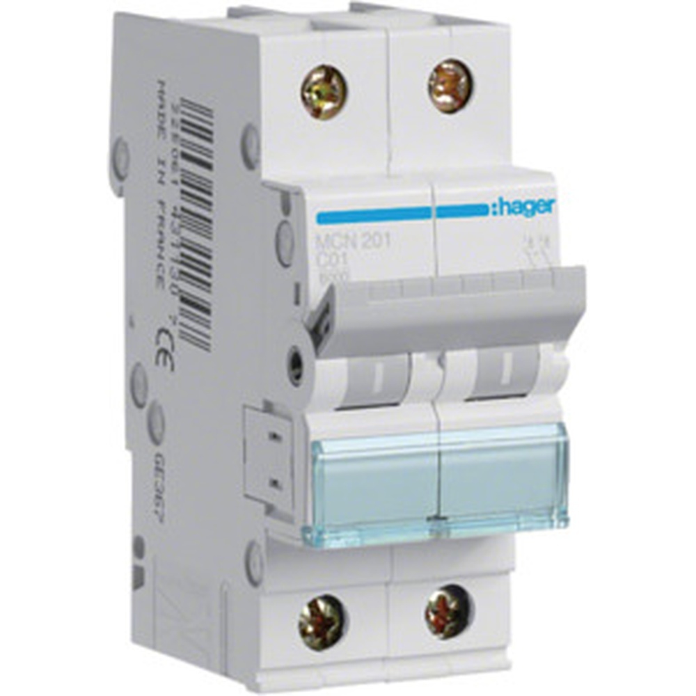 Hager Leitungsschutzschalter MCN201 Hager Installation Leitungsschutzschalter 2 polig 6kA C-Charakteristik 1A 2 Module. Leitungsschutzschalter nach DIN VDE 0641 Teil 11/8.92, Beruehrungsschutz IP2x nach DIN VDE 0106 Teil 100 mit VDE Zeichen. LS mit zeitverzoegertem thermischen Ausloeser fuer Ueberlastschutz EAN Nr. 3250614311239 Hager Artikel Nr. MCN201 Warengruppe Hager LS Schalter