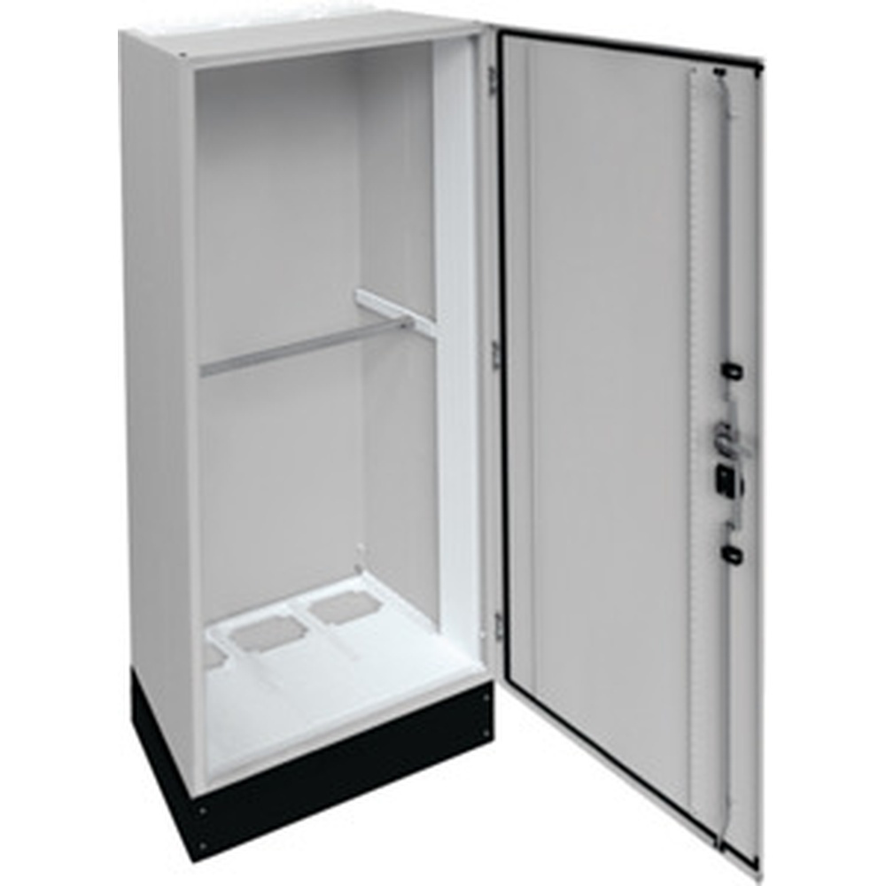 Hager Schrank FR23G2 Schr univers IP55 SKI 2050x800x400mm Schrank univers IP55/I 1850x800x400mm 200mm Sockel. Einzelstandverteiler für die Innenraummontage mit VDE-Gutachten Fertigungsüberwachung nach DIN EN 61439-1/-2/-3 und Maßnorm DIN 43 870 zur Aufputz Montage. Zum Aufbau einer Niederspannungsverteilung bis 800 A 3AC 230/400 V 50 Hz. Schutzart IP55 Schutzklasse I oder II Luft- und Kriechstrecken nach DIN VDE 0110-1/-2. Bestehend aus Schrank mit Tür aus pulverbeschichtetem eingebranntem profiliertem 1 5 mm dicken Stahlblech. Durchsteckflansche oben unten offen Leitungseinfügungen einbaubar . Sammelschienendurchführungen als seitliche Vorprägung. Tür aufliegend mit innen liegenden Scharnieren Türanschlag standardmäßig rechts wechselbar mit 110 Grad Öffnungswinkel. Serienmässig mit Schwenkhebelverschluss DIN-Profil-Halbzylinder einbaubar. Waagerechte Abfangschiene zur stabilisierung im Schrank enthalten. Türdichtung umlaufend geschäumt temperaturbeständig und ölbeständig. Sockelleiste Höhe 200 mm serienmäßig montiert mit abnehmbarer Frontblende. Hinweis Wand- und Bodenbefestigung notwendig! Türverschluß durch andere Schließungen austauschbar. Schrank nebeneinander anflanschbar. Hersteller Hager Nr. FR23G2 EAN Nr. 3250610701140 Warengruppe Hager Univers Schränke